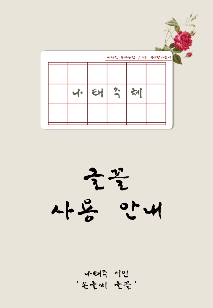 이런 노력들로 만들어진 나태주체를 배포합니다. 나태주 시인님이 제공해주신 손글씨와 우리말글 사랑에 힘써준 문자동맹의 도움을 받아 세상에 나오게 되었습니다.