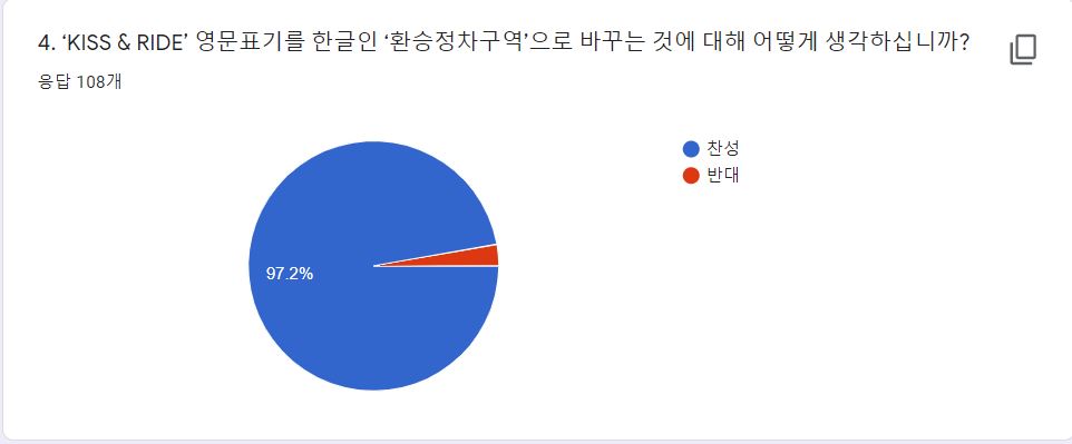 3. 2017년 7월에 경기도 용인에 거주하는 시민의 제보를 받아서 신분당선 동천역에 표시되어 있던 키스 앤 라이드 바닥(노면) 표시와 안내판을 처음 알게 되었고, 이를 용인시청 도로과에 고쳐달라고 요구해서 2018년 3월 초에 ‘환승정차구역’이라는 이름으로 바꾸었습니다. 그 후에도 우리 연대에서 분기별로 활동하고 있는 대학생 동아리 우리말가꿈이와 함께 광교중앙역, 탄현역, 여주역, 강매역, 곤지암역, 초월역, 영종역, 삼동역, 경기광주역, 세종대왕릉역, 오목천역 등의 키스 앤 라이드 표기를 우리말로 고치는 활동을 계속했습니다. 한 시민은 키스 앤 라이드라는 이름을 들으니 마치 유흥주점 이름 같다고 말하기도 했습니다.