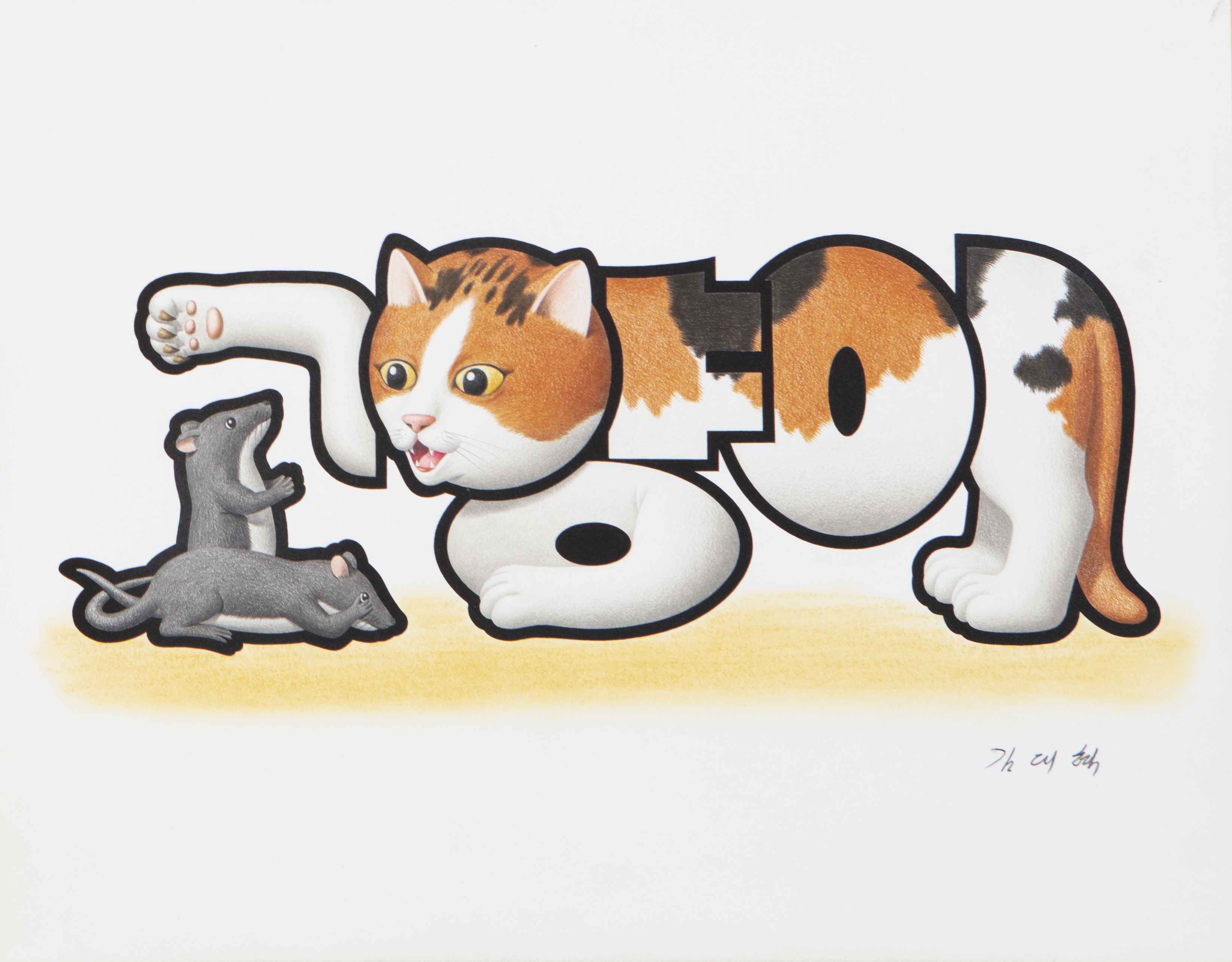 고양이와 쥐라고 하면 대표적으로 '톰과 제리'가 생각나면서 쥐를 쫓는 고양이의 이미지가 그려지기도 하지만 고양이 장난감 중에서도 쥐 모양의 장난감이 많은 것을 보면 천적관계는 맞는 것 같아 쥐를 같이 그려 보았습니다.