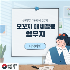 | 우리말가꿈이 20기 모집 (0) | 2021.02.02 |