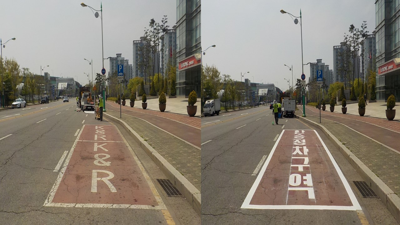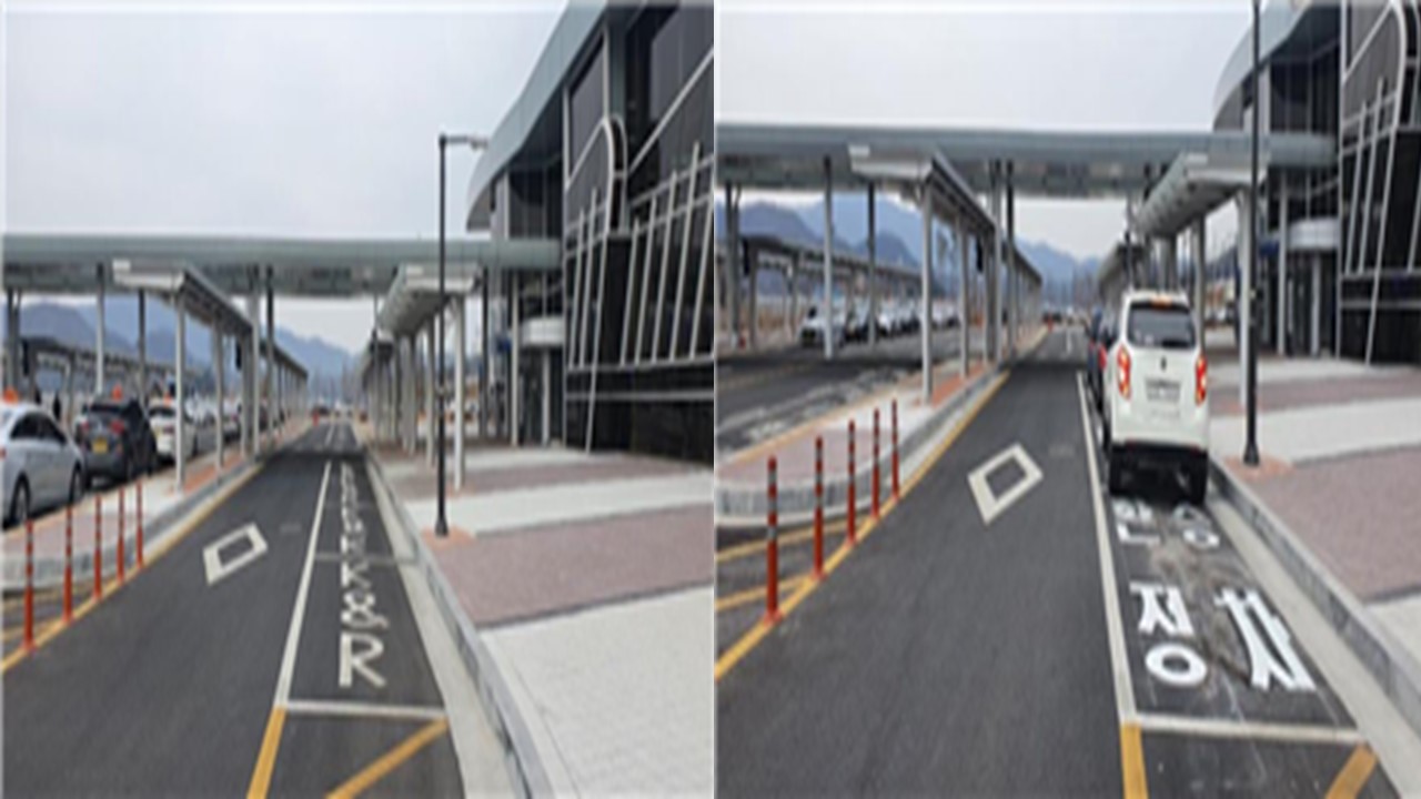 철도역 근처 도로에 새겨진 뜻 모를 ‘Kiss & Ride’ 표기가 사라진다.
