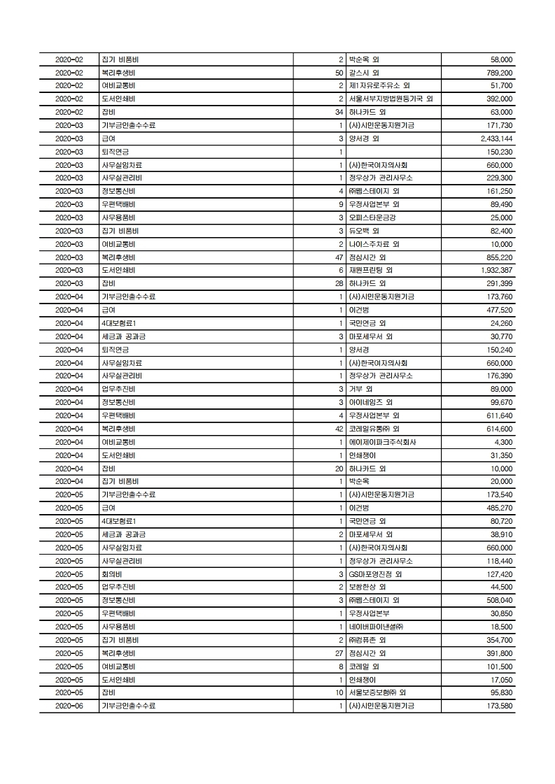 한글문화연대의 2020년 공익법인 결산서류 등의 공시 및 기부금 활용실적 명세서를 '아래'와 같이 공유합니다. 국세청 홈택스(www.hometax.go.kr/)에서도 확인하실 수 있습니다. (국세청 홈택스 – 공익법인 결산서류 공시 – 공시/공개 열람하기 – 공익법인 결산서류 등 공시 – [한글문화연대]로 조회)