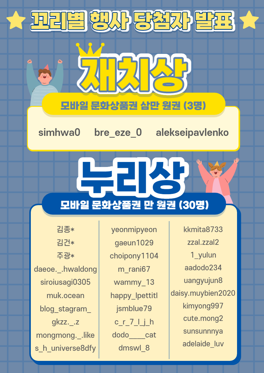 재치상, 누리상에 당첨된 분들 모두 축하합니다!