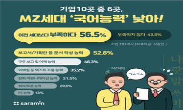 “근데, 꼭 글을 읽어야 하나요?”라고 반문할 수도 있겠다. 동영상, 카드뉴스, 그림 등 대체할 매체가 많은 시대에 줄글이 영상, 이미지와 경쟁관계처럼 보이는 것은 어떻게 보면 당연하다. 게다가 짧은 문자로 소통하는 것이 일상이 된 요즘, 깊이 있는 표현은 쓰지 않고 쉬운 단어, 유행어, 그리고 이모티콘으로 얼버무리는 경우도 많다. 긴 글을 선호하지 않고 글을 읽지 않으려는 현상은 이미 전 세계적인 문제이고 필자 또한 이 기사를 쓰고 있지만 사실 글을 읽고 쓰는 것이 익숙하지 않다. 하지만 과연 우리는 글과 동떨어진 삶을 살고 있을까? 아니다. 가장 쉬운 예로, 대학에 들어가고 직장에 들어가기 위해 기본적으로 ‘글’을 알아야한다. 입사 지원자의 역량을 평가하기 위한 것은 모두 글로 되어있는 시험이고, 글을 이해해 문제를 해결하는 능력이 요구된다. 즉, 사회에서 요구하는 기본적인 능력이 글인 것이다. 구인구직 매칭 플랫폼 ‘사람인’이 기업 191개사를 대상으로 20대 초반~30대 후반(MZ세대) 직원의 국어능력을 조사한 결과, 56.5%가 국어능력이 이전 세대보다 부족했다고 밝혔다. 실제로 직장에서 일할 때 문서작성 등 글을 쓰는 능력이 굉장히 중요한데, 기업들이 젊은 직원들의 국어능력 부족으로 어려움을 겪고 있는 것으로 조사되었다.