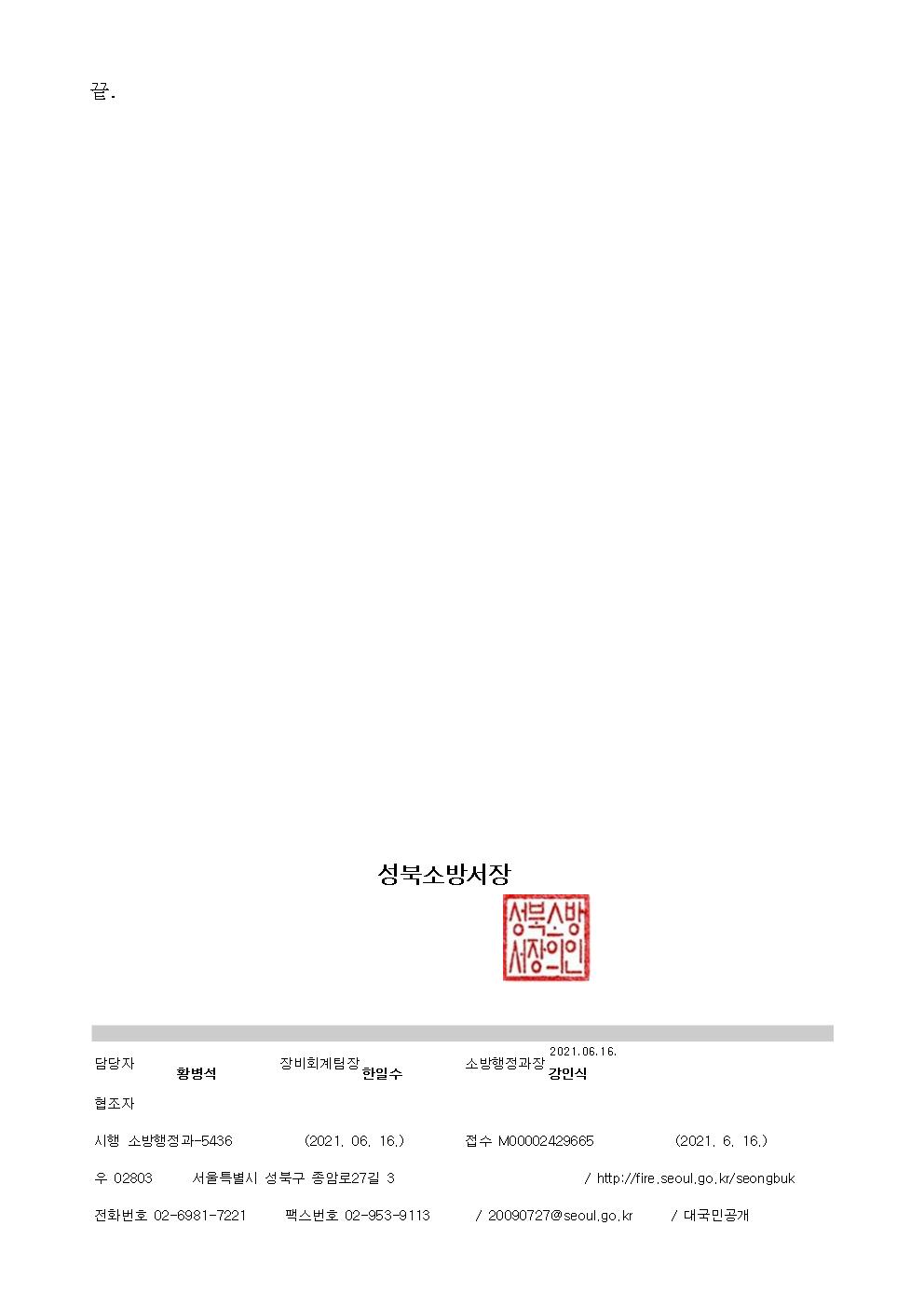 나. 소방행정과-5410(2021.6.16.)호 『청사 소방구호 부착물 교체 계획 보고(알림)』