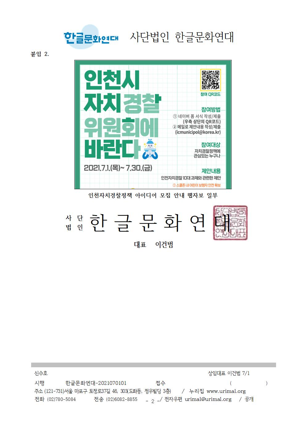 1. 인천광역시자치경찰위원회의 우리말글 사랑에 고마움을 밝힙니다.