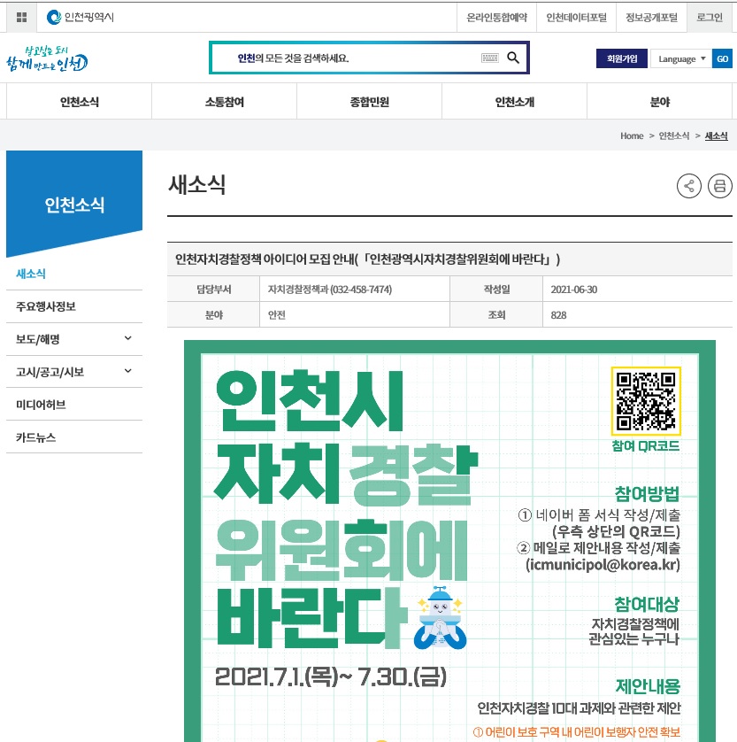 붙임 : 인천광역시 홈페이지(자료 수정) 1부. 끝