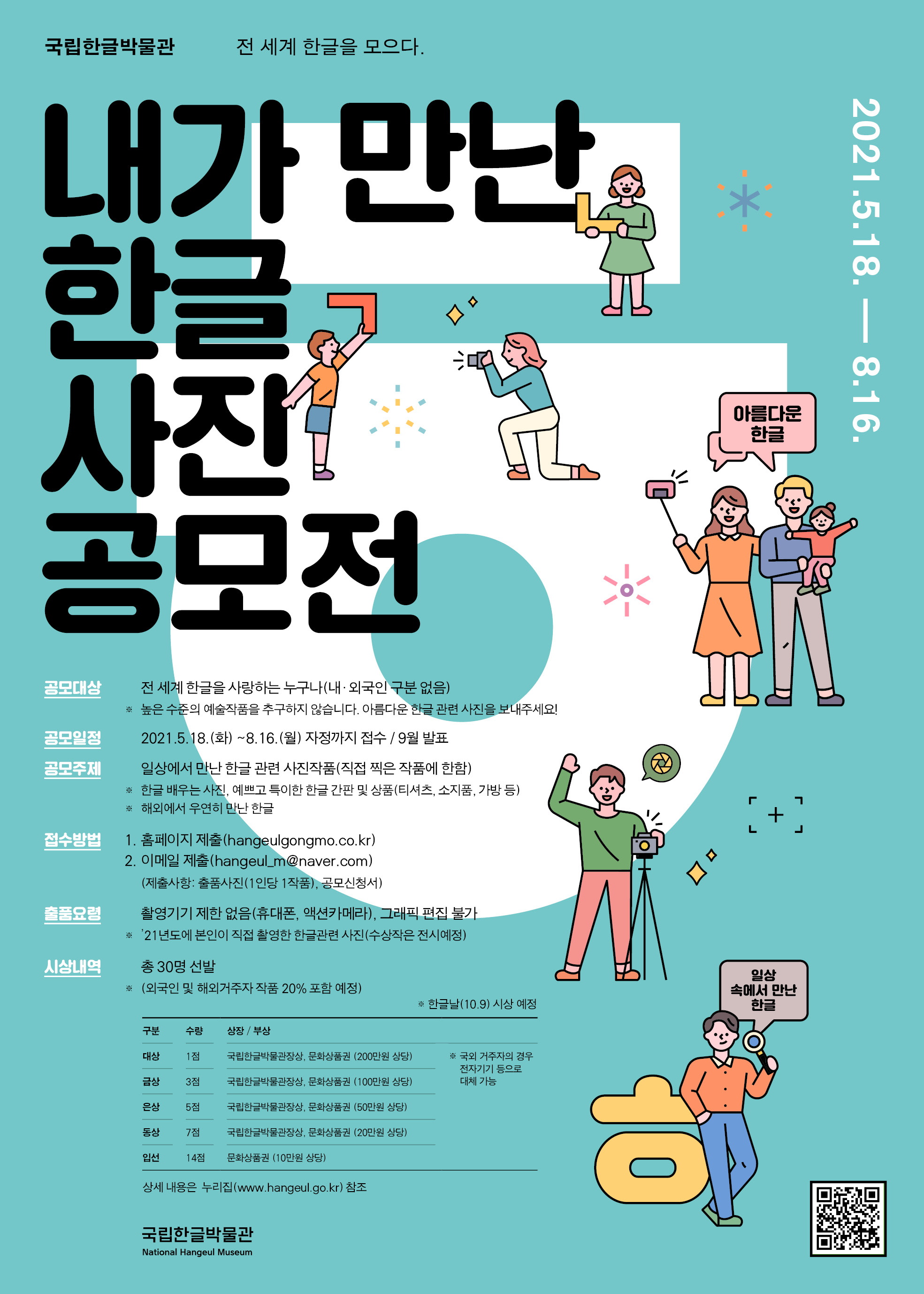 | 대상 | 1점 | 국립한글박물관장상, 문화상품권 (200만원 상당) |
