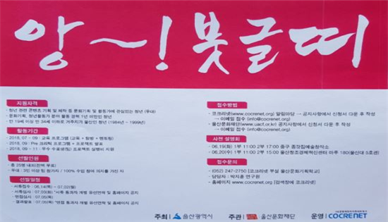 <자료 1. 울산시 '청년문화기획자 육성'과정 중 교육 프로그램 홍보 포스터>