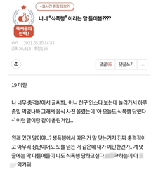 온라인 커뮤니티 네이트 판에 “너네 ‘식폭행’이라는 말 들어봄?”이라는 제목의 글이 올라온 것을 보았다. 글쓴이는 “친구가 ‘아 오늘도 식폭행 당했다~’라고 썼는데 원래 있던 말이냐. 성폭행에서 따온 것 같다”며 “아무리 장난이어도 도를 넘는 것 같다”라고 문제를 제기했다. ‘식(食)폭행’은 특정 사람이나 상황 때문에 음식을 아주 배부르게 먹게 됐을 때 쓰는 신조어다. 식폭행의 어원은 명확히 규정되지는 않았지만 주로 ‘당했다’라는 표현과 함께 쓰이다 보니 ‘성폭행’이 연상되는 것이 사실이다. 유튜브에도 많은 먹방(먹는 방송) 유튜버들이 자신의 영상에 ‘식폭행을 당했다’, ‘식폭행 당한 썰’과 같은 제목을 달아둔 것을 쉽게 찾아볼 수 있다. ‘식폭행 당했다’는 표현이 점차 확산되면, 기존 성범죄에 대해 사람들이 점차 대수롭지 않게 생각할 가능성이 커질까봐 우려스럽다.