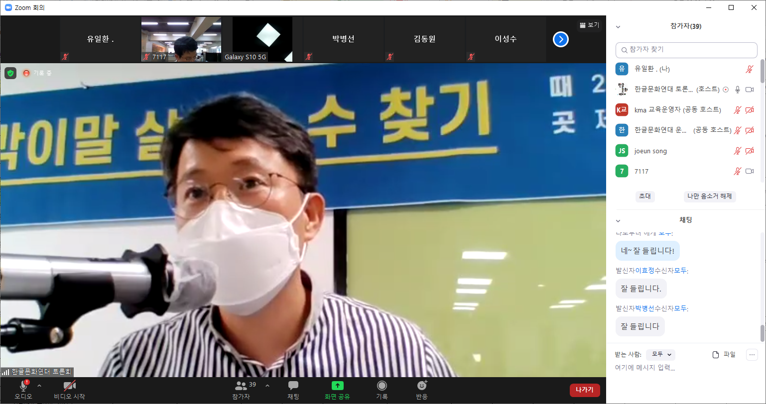 이후 토론에서는 물리, 수학, 지리, 화학 등 각 분야에서 토박이말을 널리 알릴 수 있는 방안과 앞으로 함께할 수 있는 방향에 관한 논의가 펼쳐졌습니다.