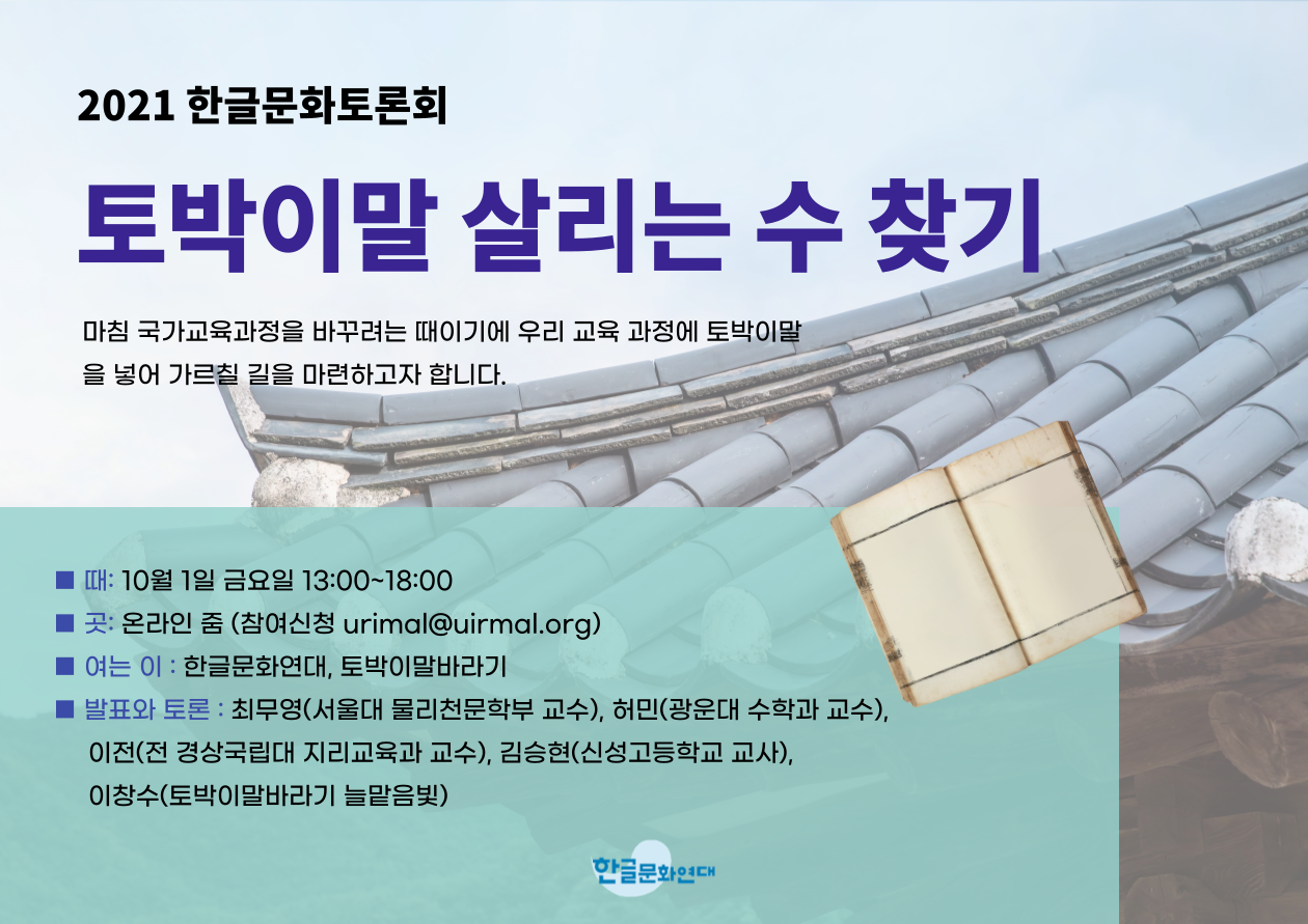 | 16:00~16:30 | 30′ | 말나눔(4) | 토박이말을 살리는 수 -우리가 꿈꾸는 나라- |