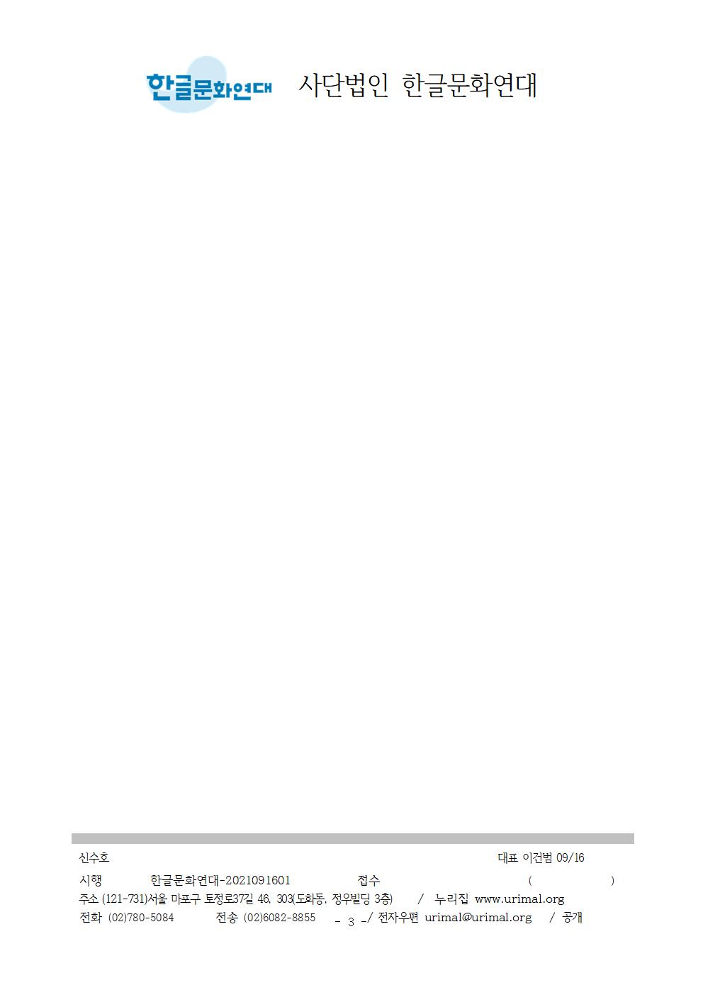 2. 사단법인 한글문화연대(대표 이건범)는 한글날을 공휴일로 만드는 데 가장 앞장선 시민단체로서 ‘언어는 인권이다’라는 믿음으로 국민의 알 권리를 지키고자 공공기관 및 언론의 쉽고 바른 언어 사용을 요청하고 있습니다.