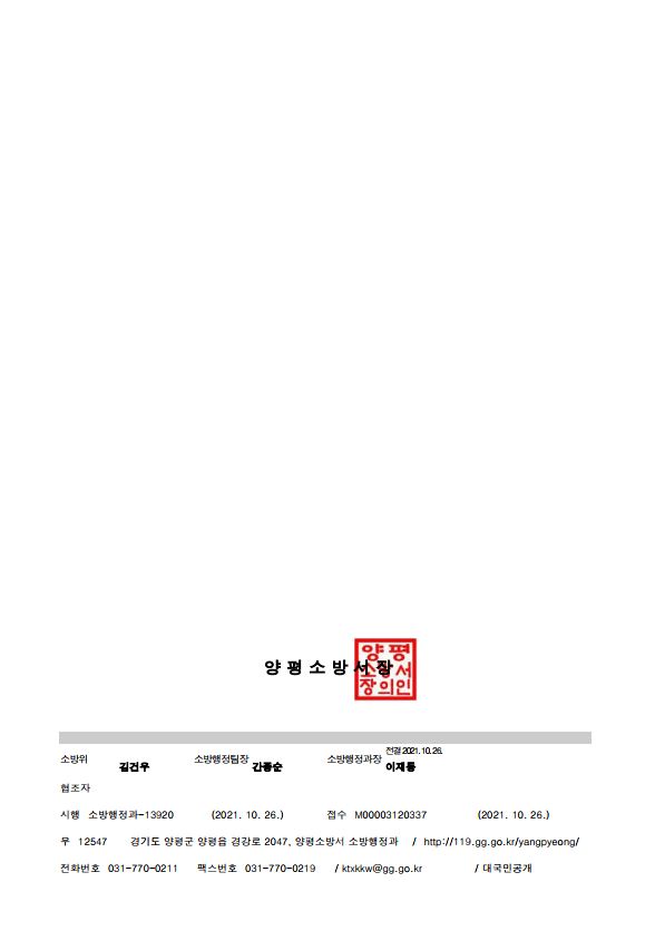 | [공문] Safe Korea 라는 외국어 대신 쉬운 우리말을 사용해 주십시오. - 양평소방서 (0) | 2021.10.27 |