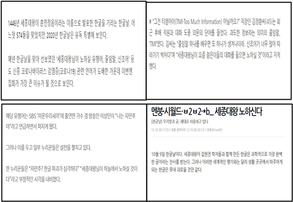 그런데, 이런 신조어와 야민정음이 한글을 파괴한다고 주장하는 한글날 특집 기사에서는 유난히 ‘세종대왕께서 노하신다.’ ‘무덤에 계신 세종대왕께서 통곡하실 것...’ 같은 문장이 많이 쓰인다. 그런데 과연, 세종대왕께서는 이런 ‘한글 재조립’을 보고 정말로 분노하실까?