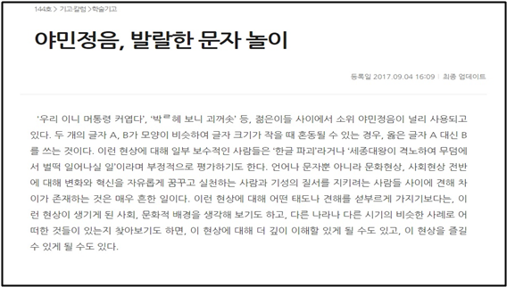 그런데, 이런 신조어와 야민정음이 한글을 파괴한다고 주장하는 한글날 특집 기사에서는 유난히 ‘세종대왕께서 노하신다.’ ‘무덤에 계신 세종대왕께서 통곡하실 것...’ 같은 문장이 많이 쓰인다. 그런데 과연, 세종대왕께서는 이런 ‘한글 재조립’을 보고 정말로 분노하실까?