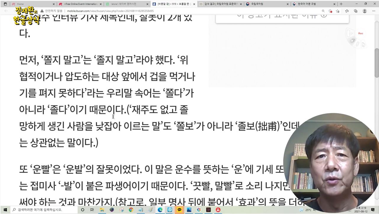2021년 11월 3일 정재환의 한글 상식