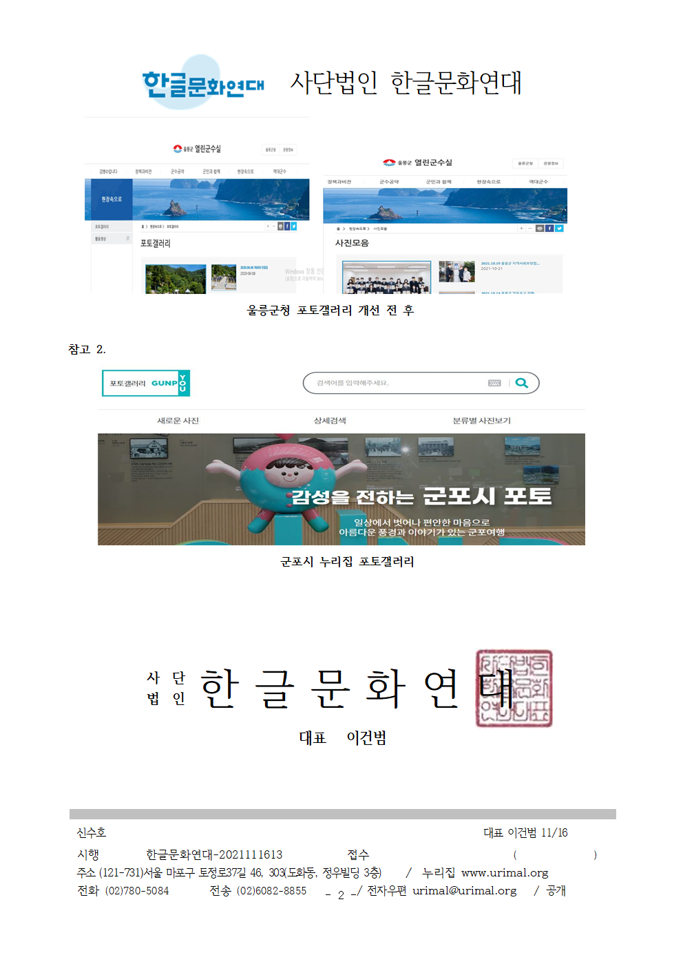 | [공문] 포토갤러리라는 외국어 대신 쉬운 우리말을 사용해 주십시오. - 2021.11.22 안양시 동안구 (0) | 2021.12.03 |