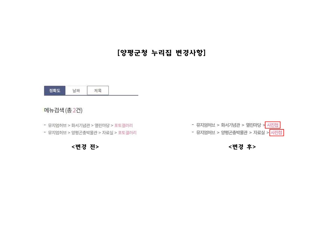 붙임 양평군청 누리집 변경사항 1부. 끝.