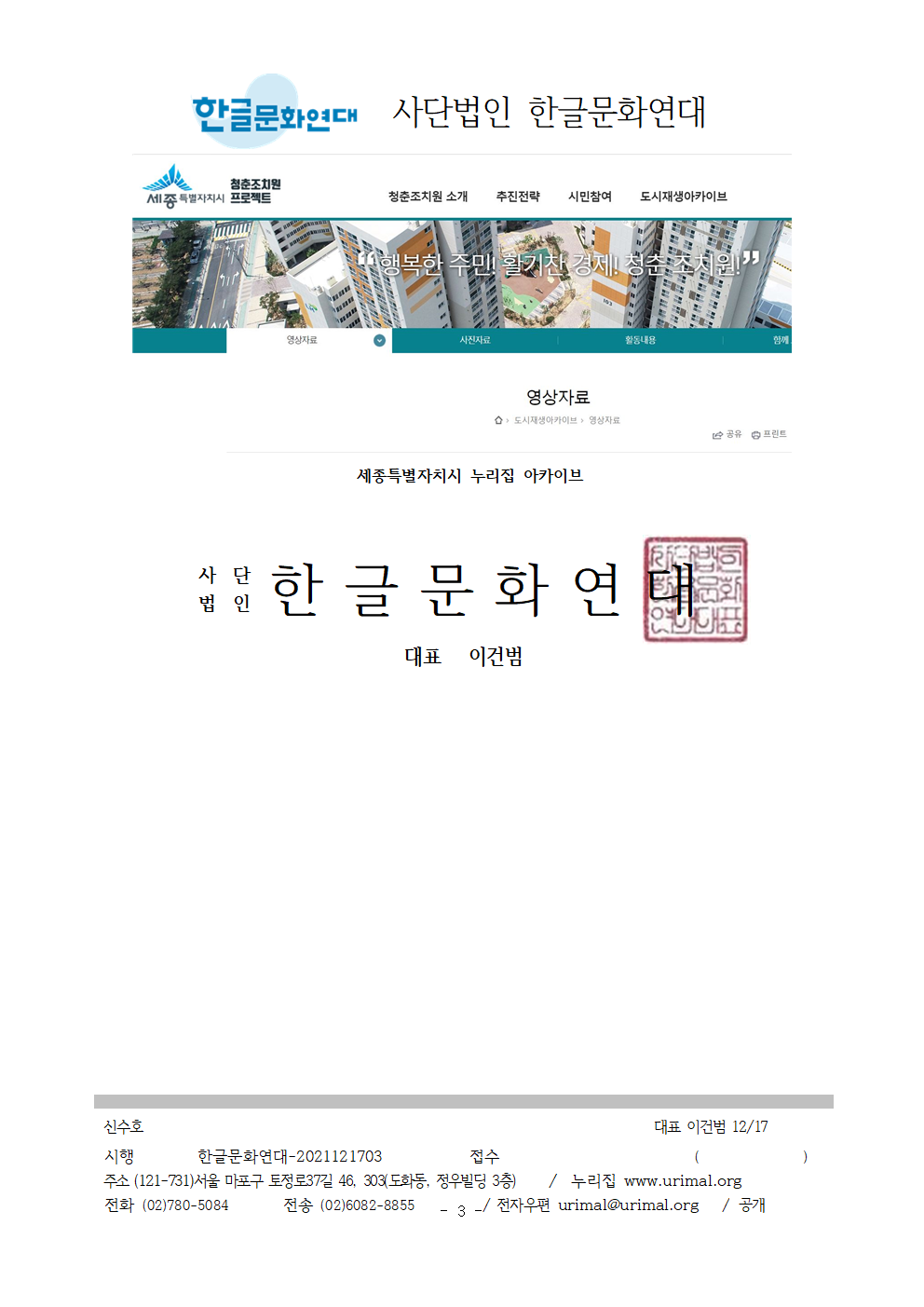 | [공문/답변] 아카이브 등 외국어 대신 쉬운 우리말을 사용해 주십시오. - 2021.12.29 세종특별자치시 (0) | 2022.01.05 |