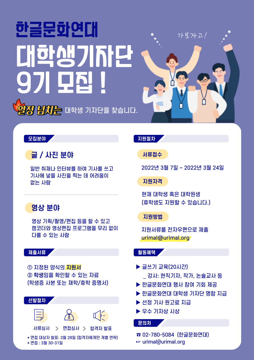 대학생기자단 9기 모집합니다! (3월 7일~3월 24일)