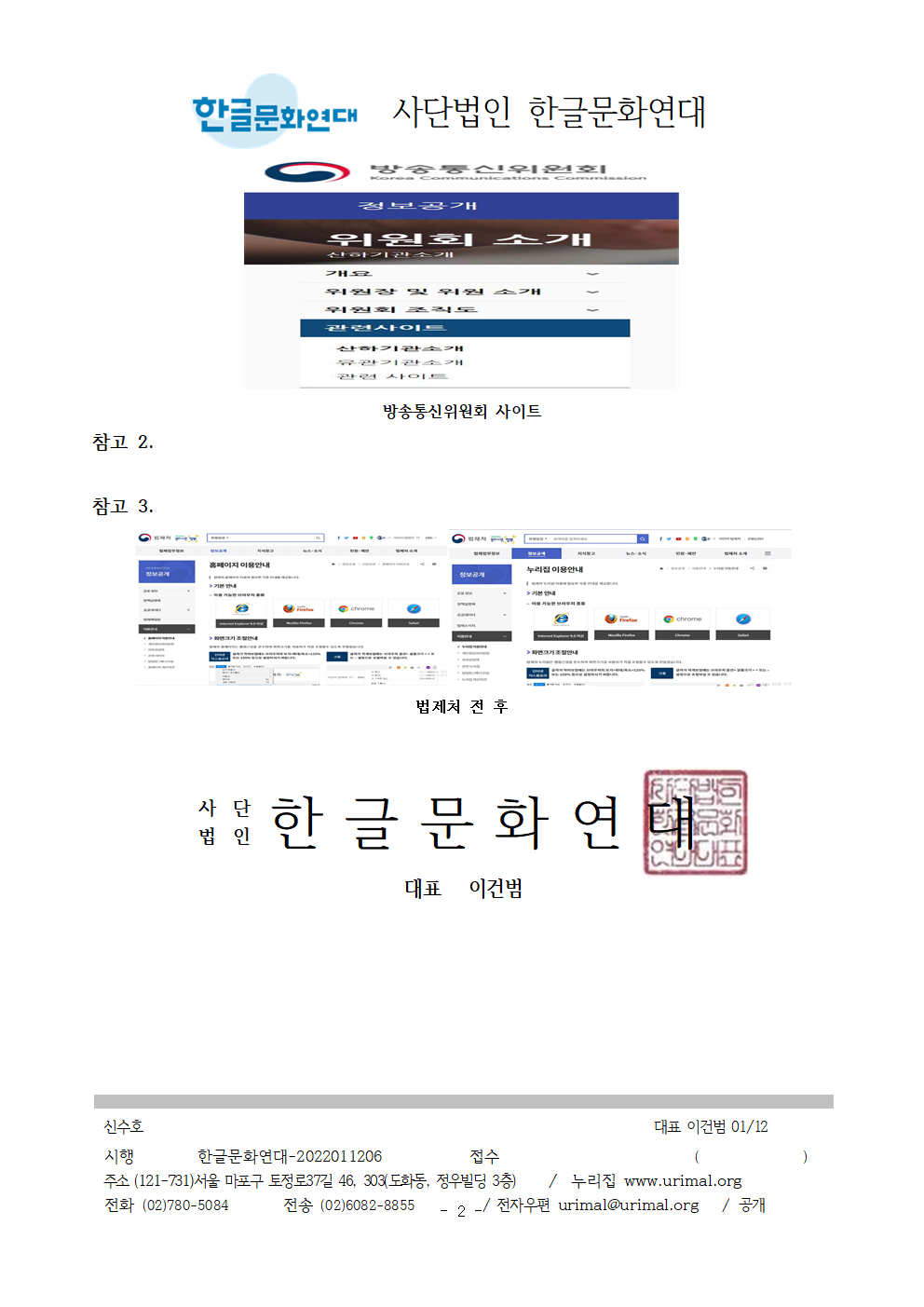 | [공문/답변] 사이트라는 외국어 대신 쉬운 우리말을 사용해 주십시오. - 방송통신위원회 2022.01.21 (0) | 2022.03.23 |