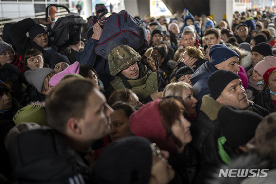 ▲ 우크라이나 키이우 역의 피난민들. (사진 출처: 뉴시스)