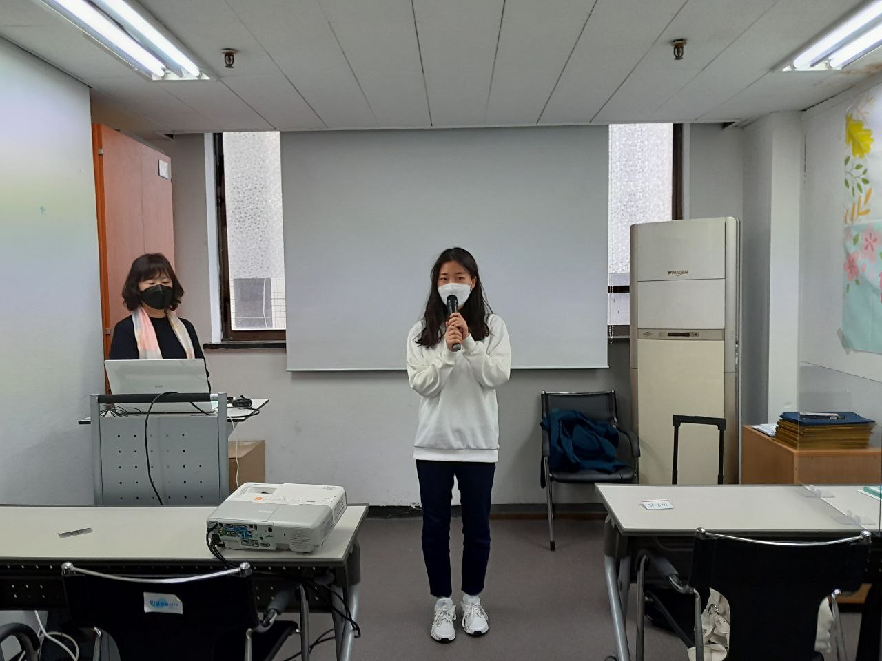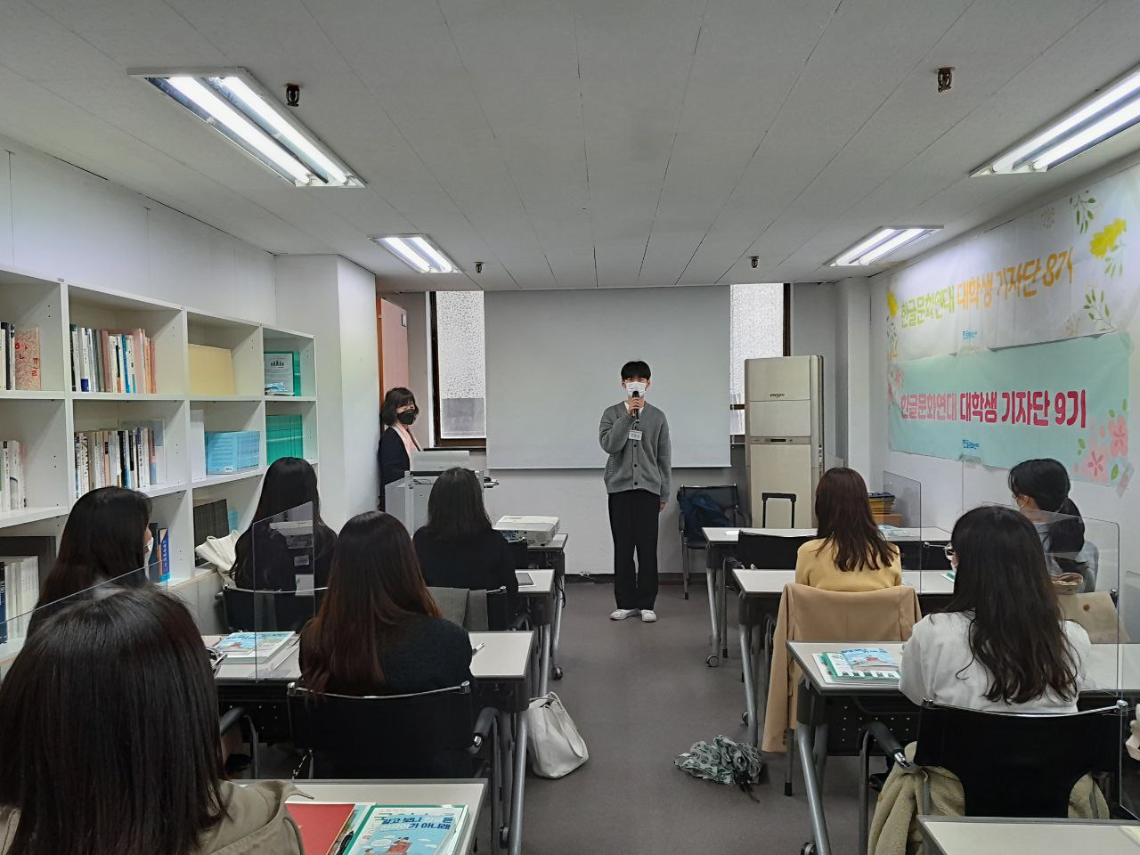 이어서 기자단 9기 학생들이 자기소개를 하는 시간을 가졌습니다.