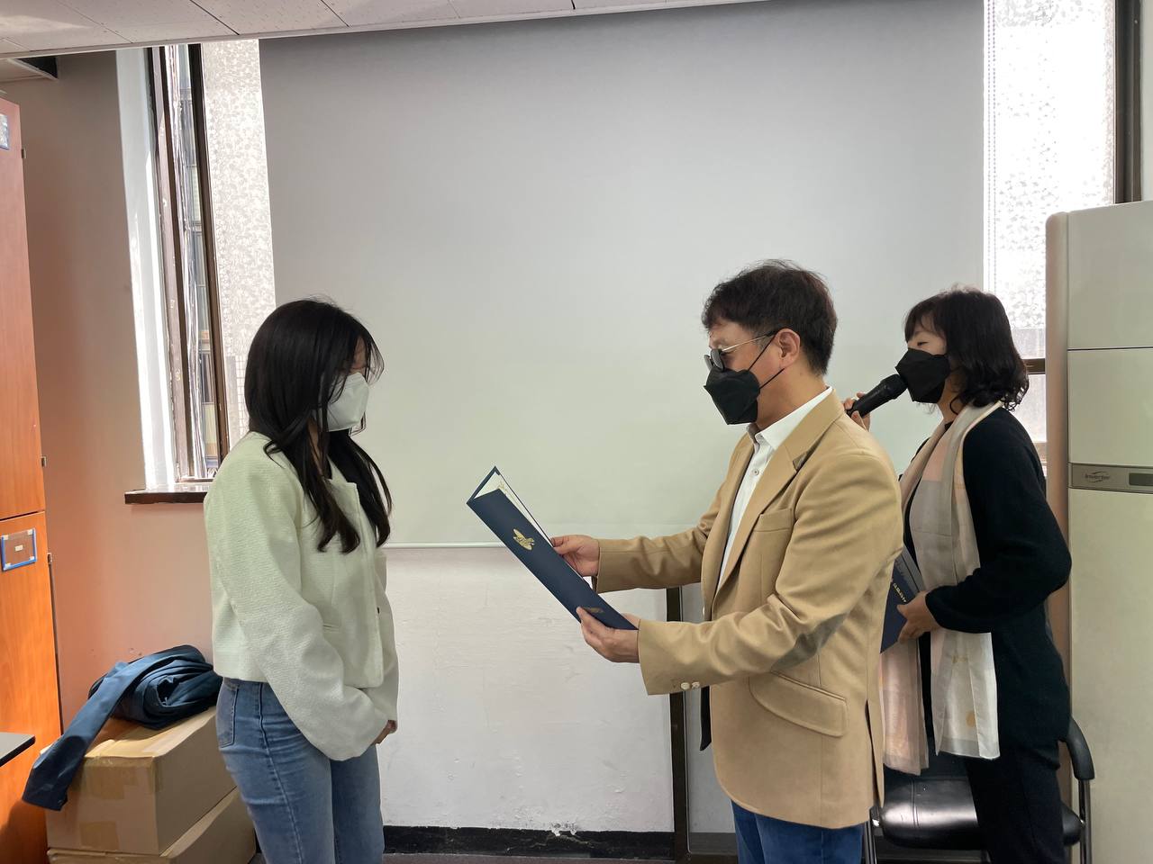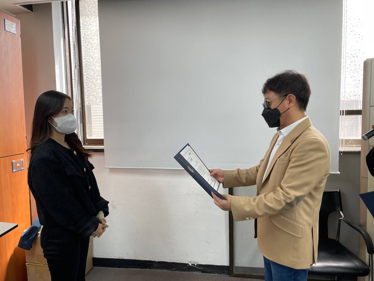 뒤이어 일 년 동안 멋진 활동을 보여준 기자단 8기에 마침 보람을 드렸습니다.