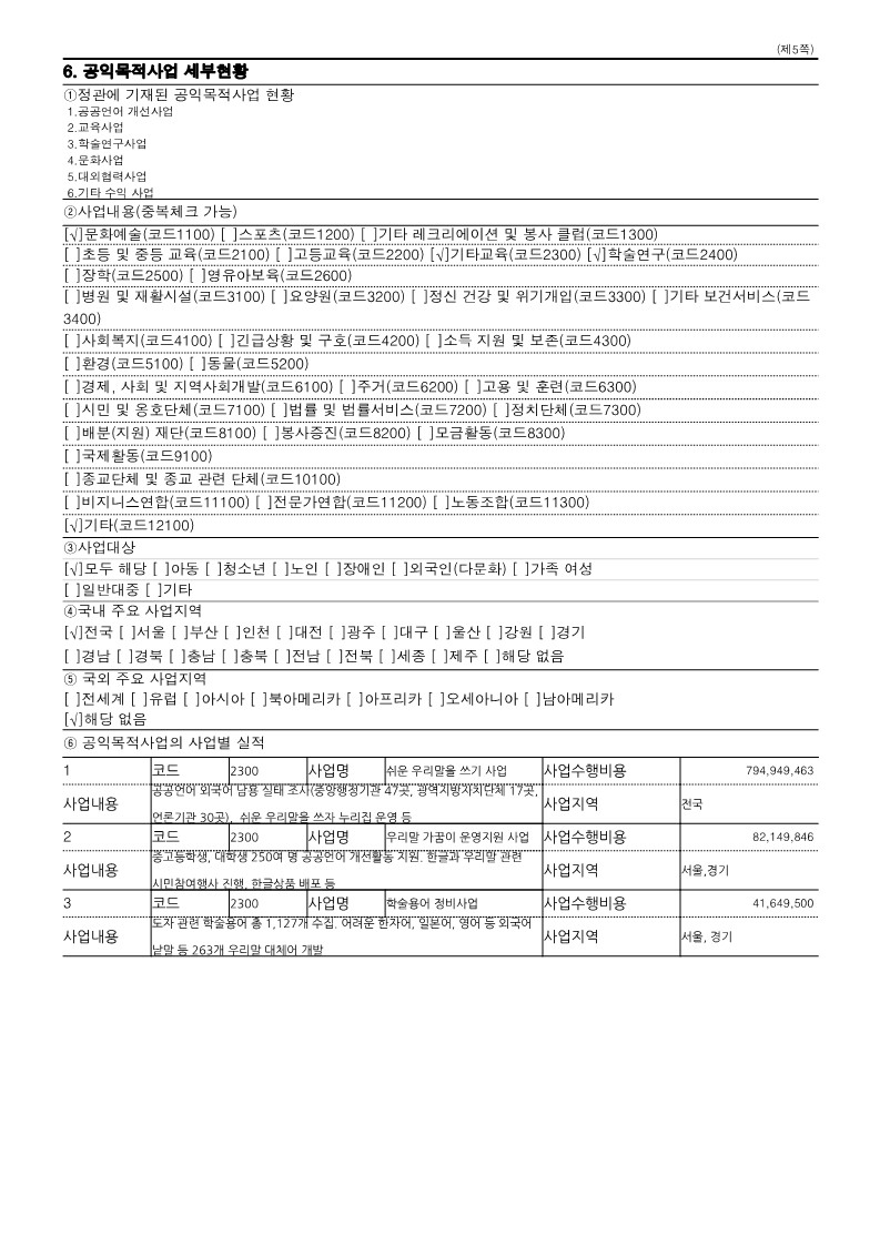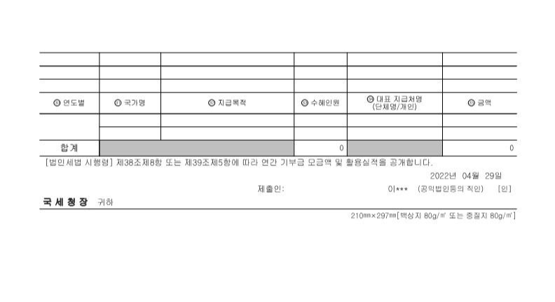| 2023년 공익법인 결산서류 등의 공시 및 기부금 활용 실적출처 (0) | 2024.04.30 |
