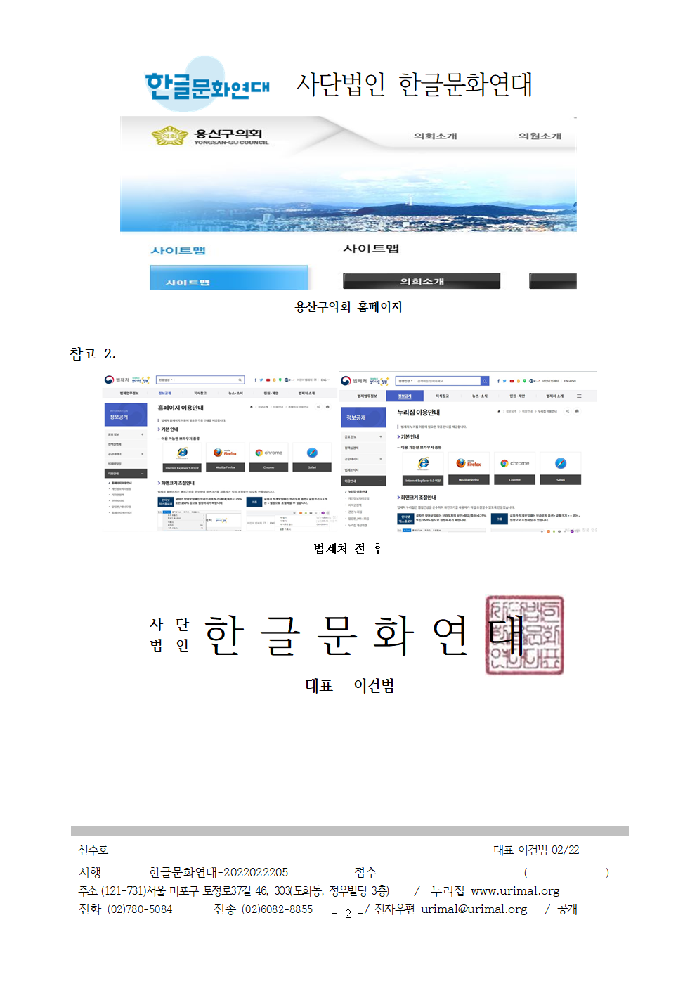 [공문] 사이트맵 등 외국어 대신 쉬운 우리말을 사용해 주십시오. 서울특별시 용산구의회 2022.02.22