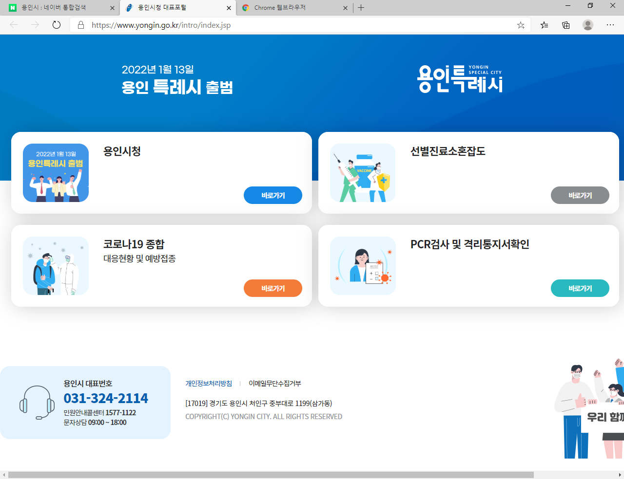 1. 용인시 홈페이지 운영에 관심과 의견에 감사드리며, 귀 기관의 무궁한 발전을 기원 합니다.