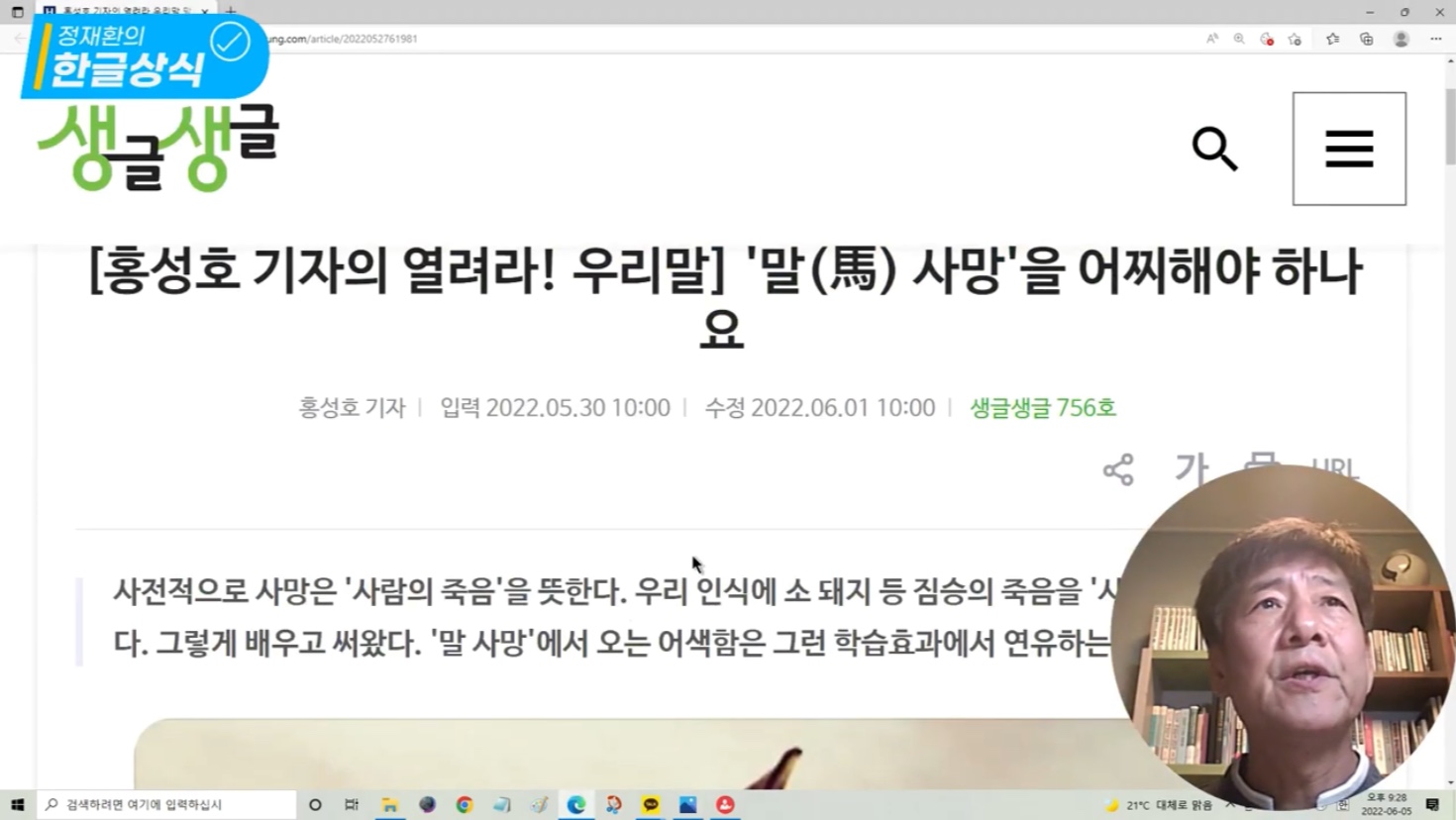 2022년 6월 5일 정재환의 한글 상식