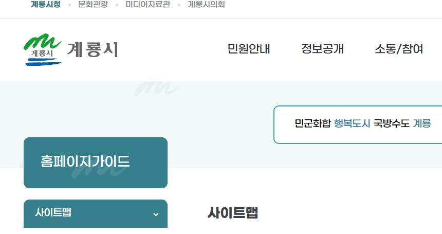 | [공문/답변] 사이트맵 등 외국어 대신 쉬운 우리말을 사용해 주십시오. 계룡시 2022.06.17 (0) | 2022.06.29 |