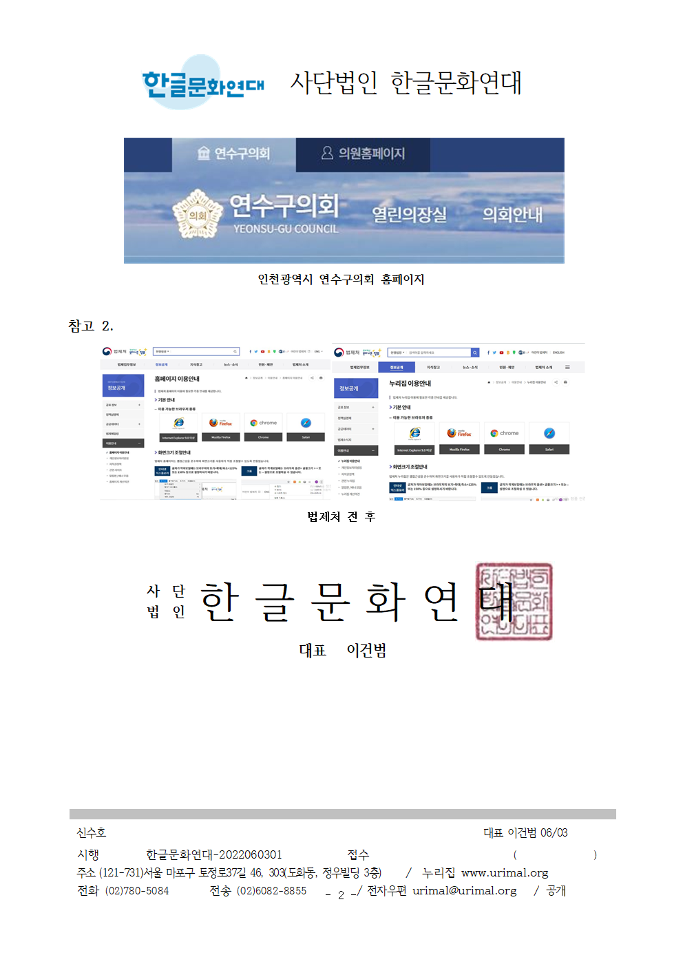 5. 이에 대한 인천광역시 연수구의회의 의견을 2022년 6월 17일까지 서면(urimal@urimal.org)으로 의견을 알려주시기 바랍니다. 고맙습니다.