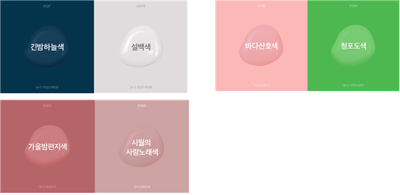 삼화페인트는 작년에 75주년을 맞아 12개의 달에 맞춰 각 달의 순우리말 이름과 대표하는 색을 만들었다. 그중에 몇 가지를 살펴보자면 1월을 상징하는 색은 겨울 밤하늘과 같은 ‘긴밤하늘색’과 하얀 눈 같은 ‘설백색’이 있다. 또 8월을 상징하는 색에는 분홍색 바다산호와 같은 ‘바다산호색’이 있고 청포도같이 청량한 색이라는 ‘청포도색’이 있다. 10월의 색은 자주색 계열과 분홍색 계열이 주를 이뤘는데 단풍잎의 색을 닮았다고 해서 ‘가을밤편지색’이라고 지었고 가을밤에 편지처럼 띄우고 싶은 노래를 닮은 색이라고 해서 ‘시월의 사랑노래색’이라고 지었다. 이처럼 색의 시각적인 면뿐만 아니라 색의 느낌이나 생각을 표현하는 단어들로 색이름을 지으면서 더 감각적인 표현이 되었다.