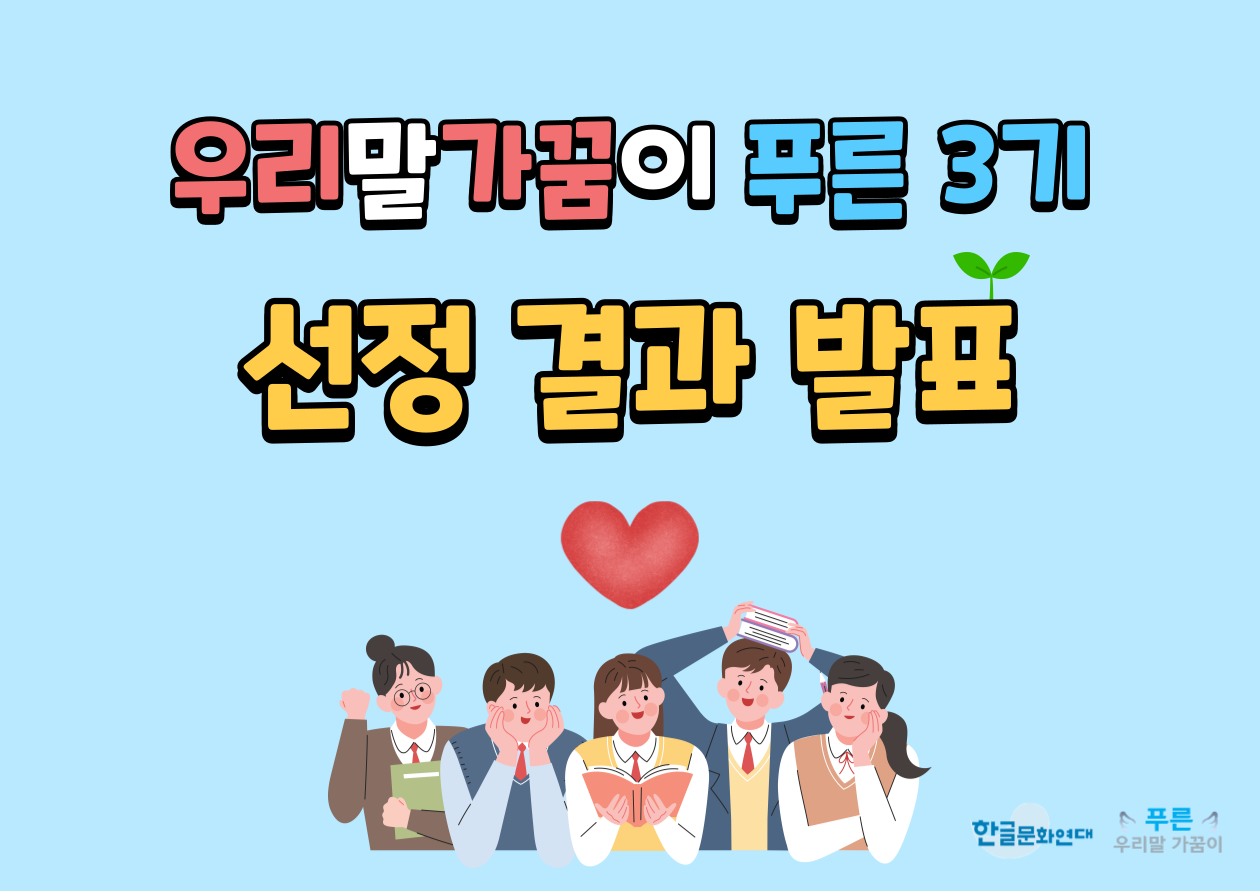 건강한 언어문화를 만드는 데 앞장 설 우리말가꿈이 푸른 3기 선정 결과를 알립니다.