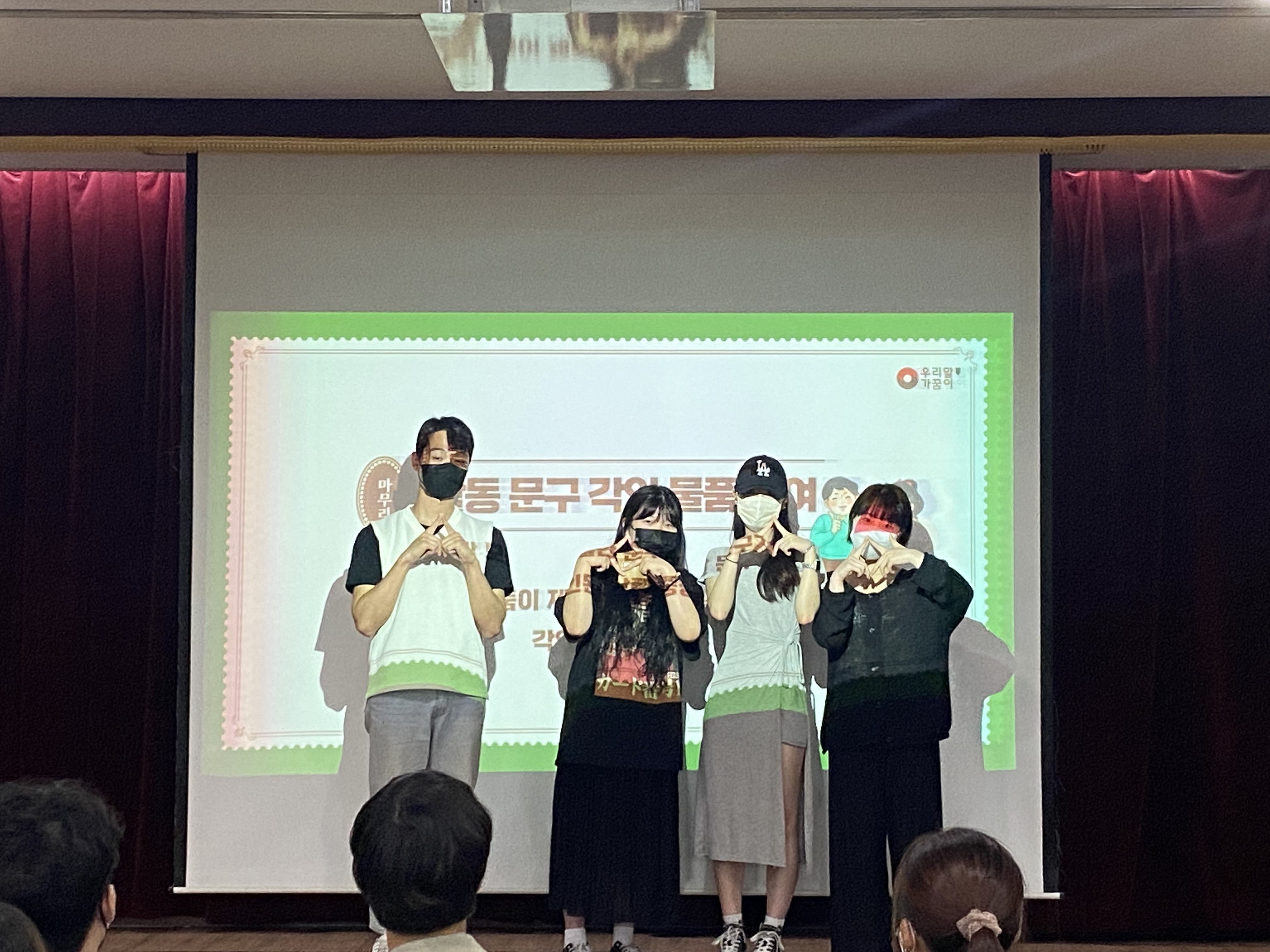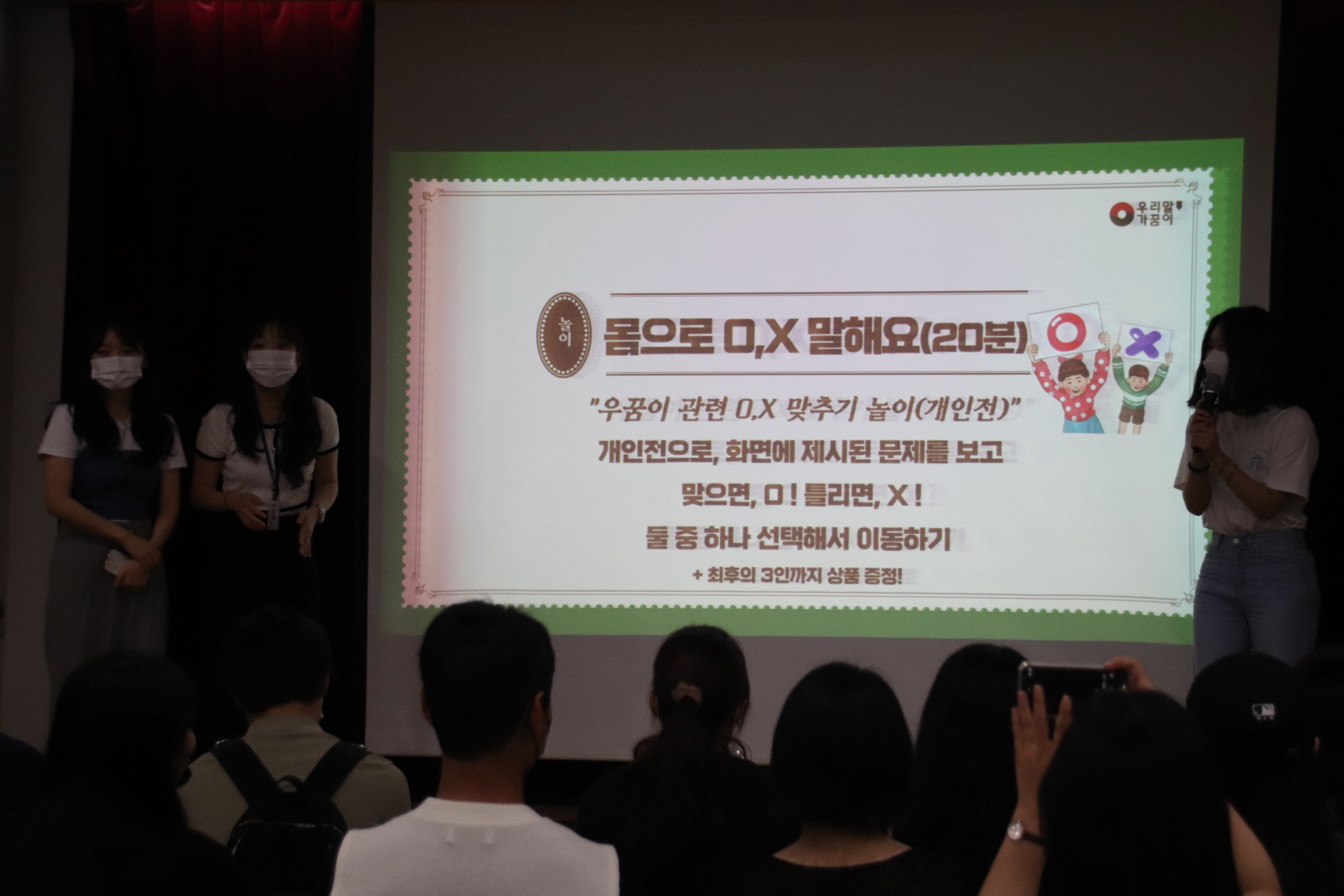 가온누리(단체 활동 기획) 모둠이 특색 있는 부스, 우꿈이들의 사연을 담은 라디오, 우리말 오엑스(OX) 문제 놀이 등 다양하고 풍성한 활동을 준비하였습니다.