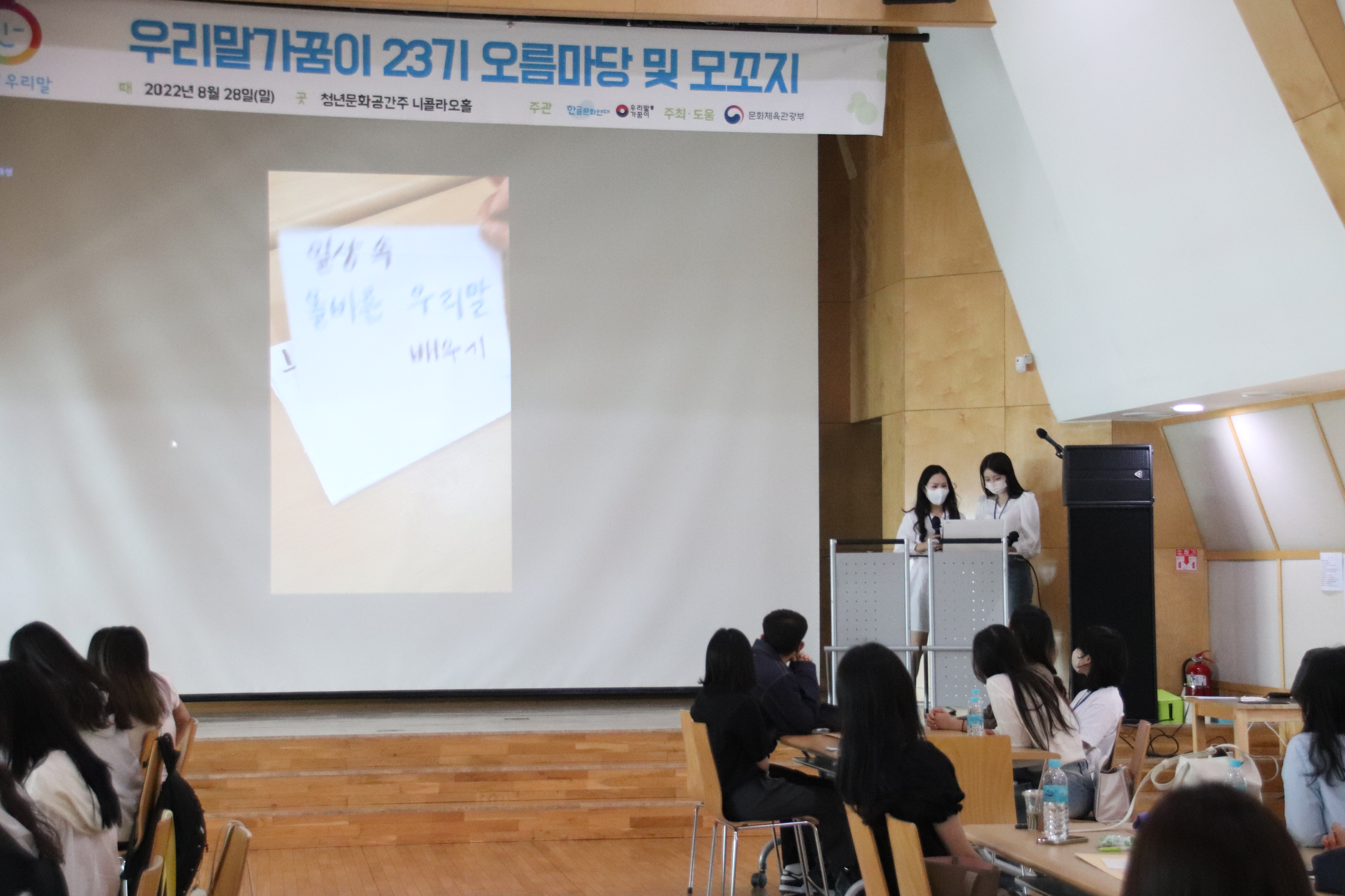 두 강연이 끝나고 우리말가꿈이 활동 안내를 유일환 지도위원이 설명해주었고, 유해심 가꿈이가 대표로 우리말가꿈이 다짐을 하며 오전 일정이 마무리되었습니다.