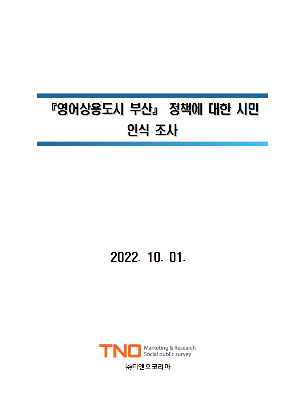 ‘영어상용도시 부산’ 정책에 부산시민들은 반대한다는 의견이 월등히 높았다. 한글문화연대와 한글학회 등이 여론조사 전문기관인 ㈜티앤오코리아에 의뢰하여 부산시민 만18~69세의 남녀 500명을 대상으로 온라인 조사를 벌인 결과, ‘영어상용도시 부산’이라는 정책에 대해 시민 응답에서 ‘반대’가 40.9%, ‘찬성’이 27.6%로 나와, 반대 의견이 찬성 의견의 1.5배였다. 40대 이하의 젊은 층에서 반대 의견이 높고, 50대 이상에서 찬성 의견이 높았는데, 이는 연령이 높을수록 시의 정책에 긍정적 태도를 보이는 경향이 반영된 것으로 판단된다.