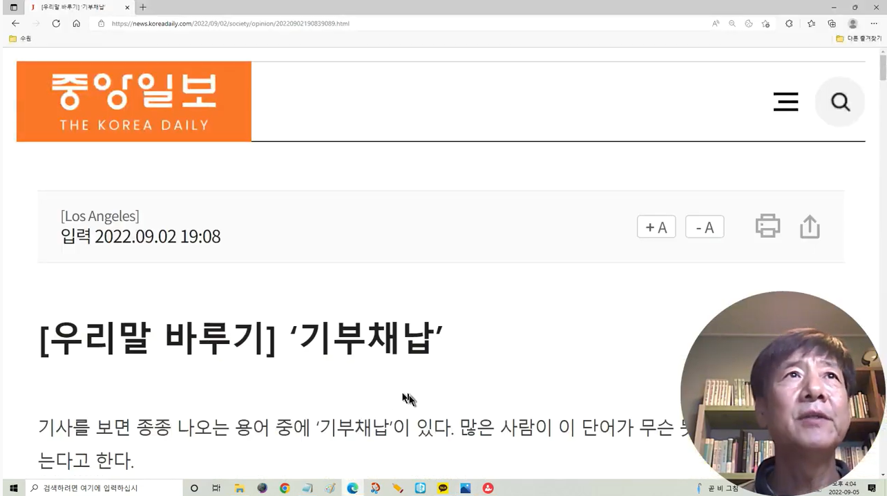 2022년 9월 24일 정재환의 한글 상식