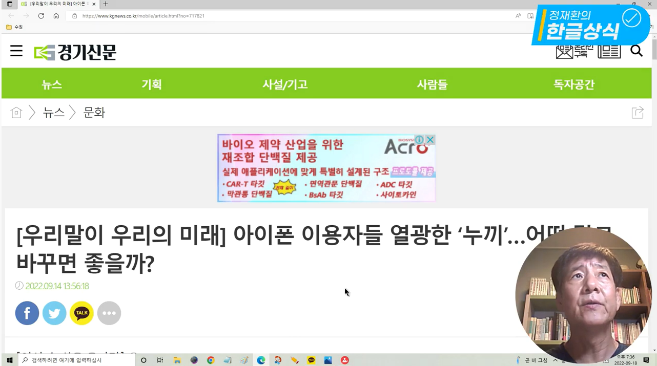 2022년 10월 2일 정재환의 한글상식