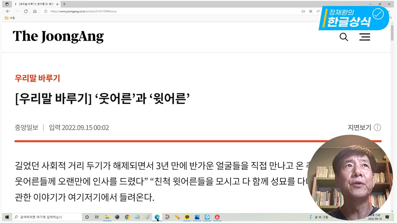 2022년 10월 10일 정재환의 한글상식
