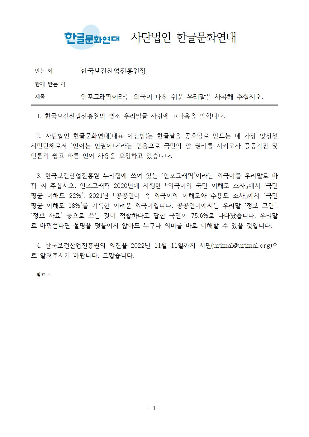 1. 한국보건산업진흥원의 평소 우리말글 사랑에 고마움을 밝힙니다.