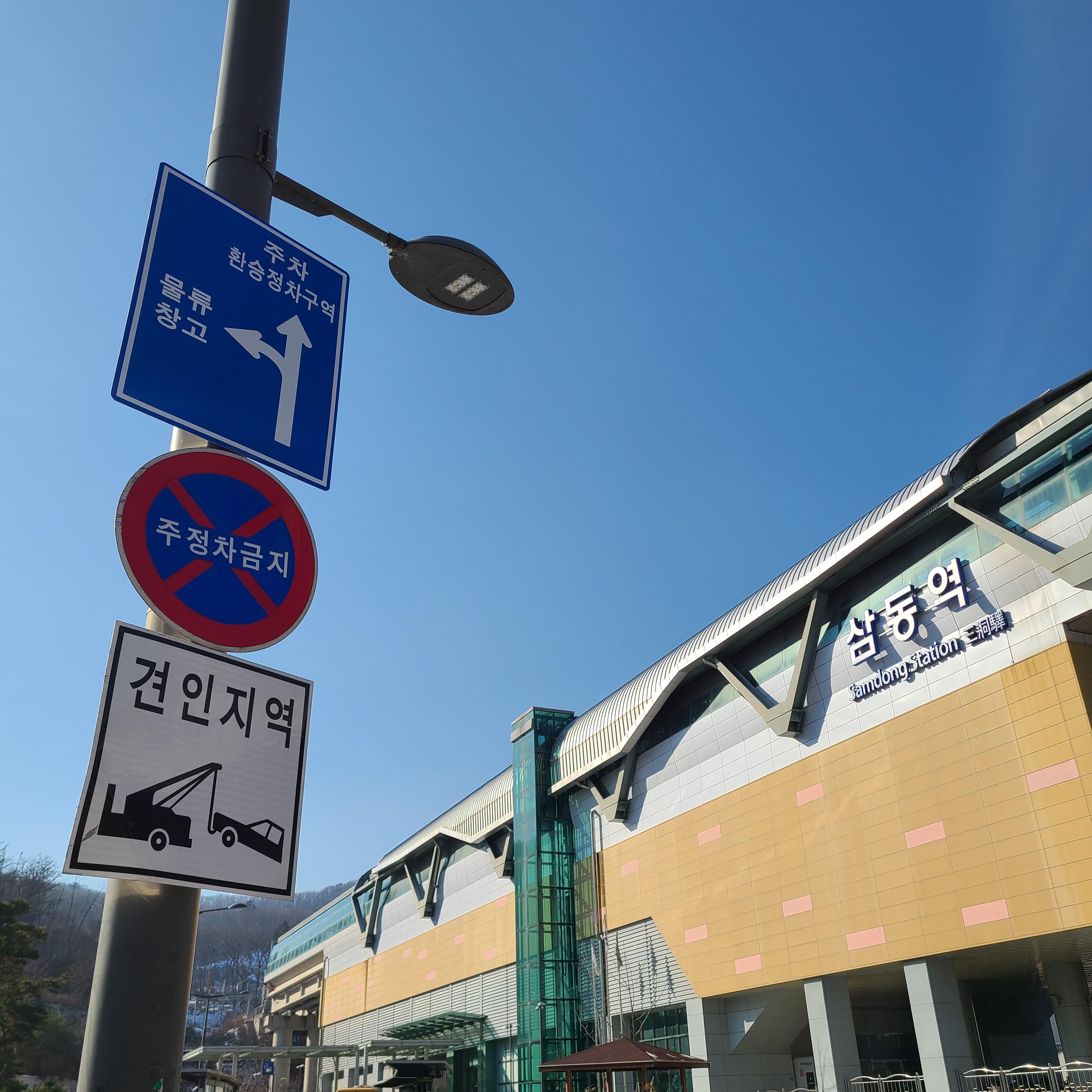 12월 25일, 삼동역에 다시 방문했을 때 'K&R'이라는 외국어가 사라지고 우리말인 '환승정차구역'으로 개선되었습니다.