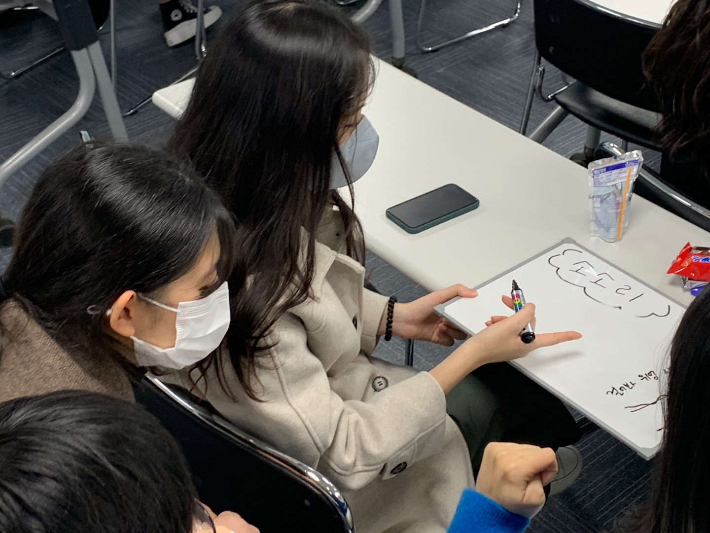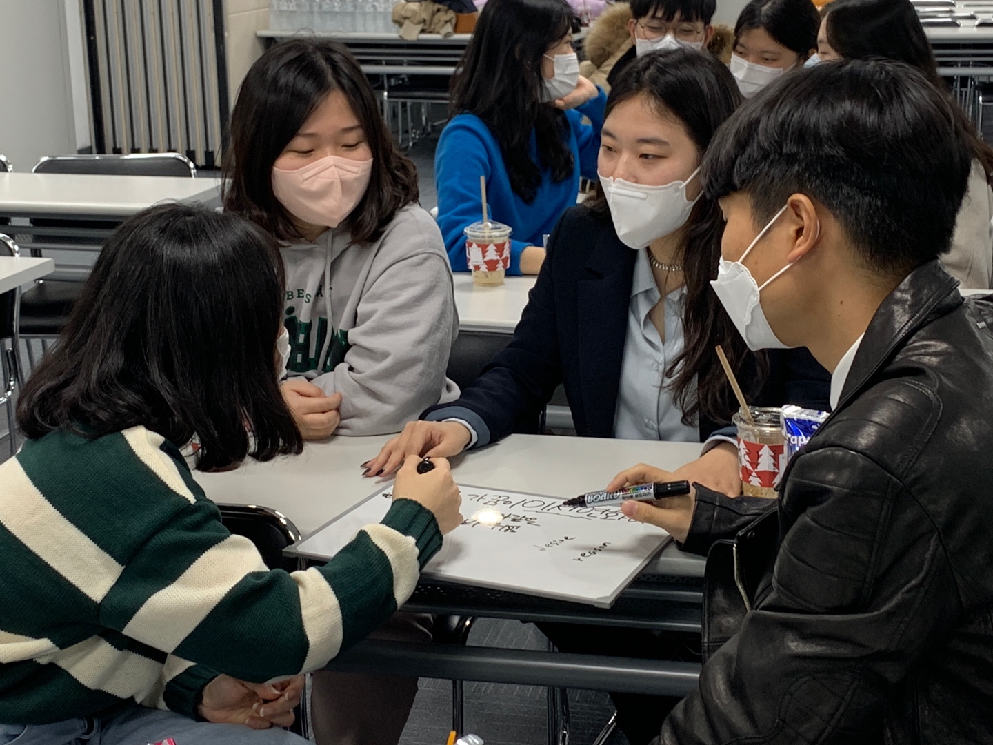 총무인 안효원, 정서라 가꿈이의 사회로 시작된 <왁자지껄 우리말 대잔치>는 우리말 수수께끼였습니다. 우리말로 된 수수께끼를 모둠별로 머리를 맞대 풀며 점수를 획득했는데요. 한국방송에서 방영하는 <도전! 골든벨>이 생각날 정도로 칠판을 꾸미고, 열심히 참여하는 모습이 인상 깊었습니다.