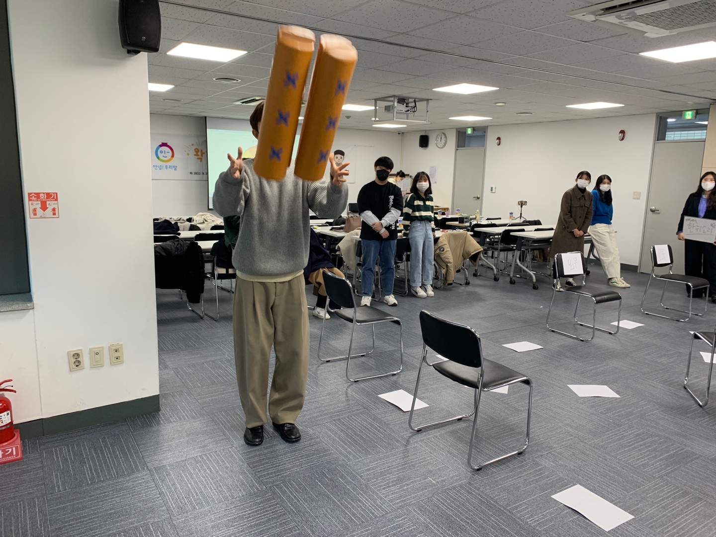 코로나 감염 등 개인 사정으로 참여하지 못한 가꿈이들이 많아 25명이 참여해 각자의 모둠원들과 함께 상크름 모둠에서 준비한 우리말 수수께끼, 훈민정음 윷놀이, 우리말 노래방 등 다양한 놀이를 즐겼습니다.