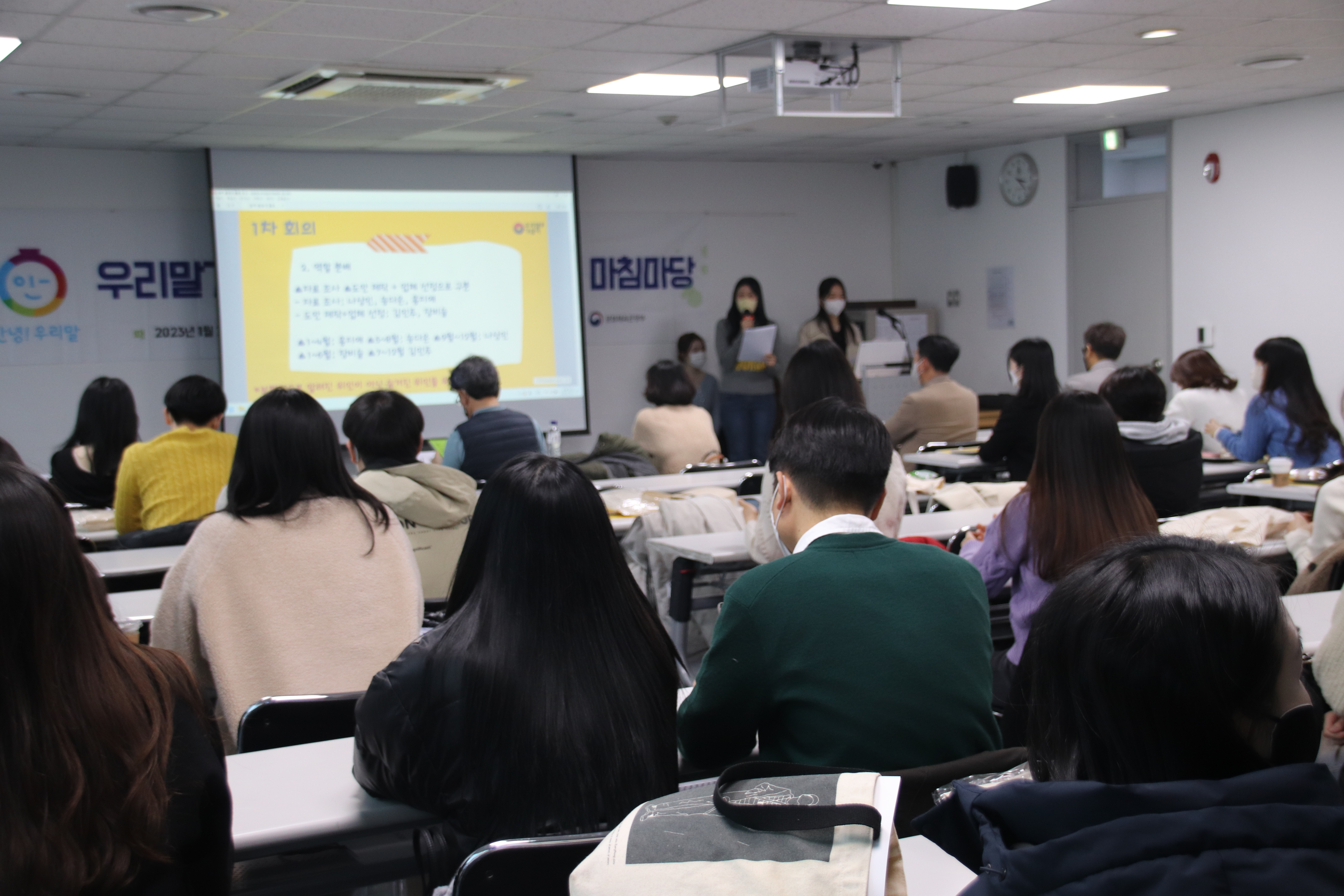 2023년 1월 7일 토요일, 오후 3시부터 오후 6시까지 청년문화공간주동교동 바실리오홀에서 우리말가꿈이 23기 활동 뽐내기 및 마침마당이 열렸습니다.