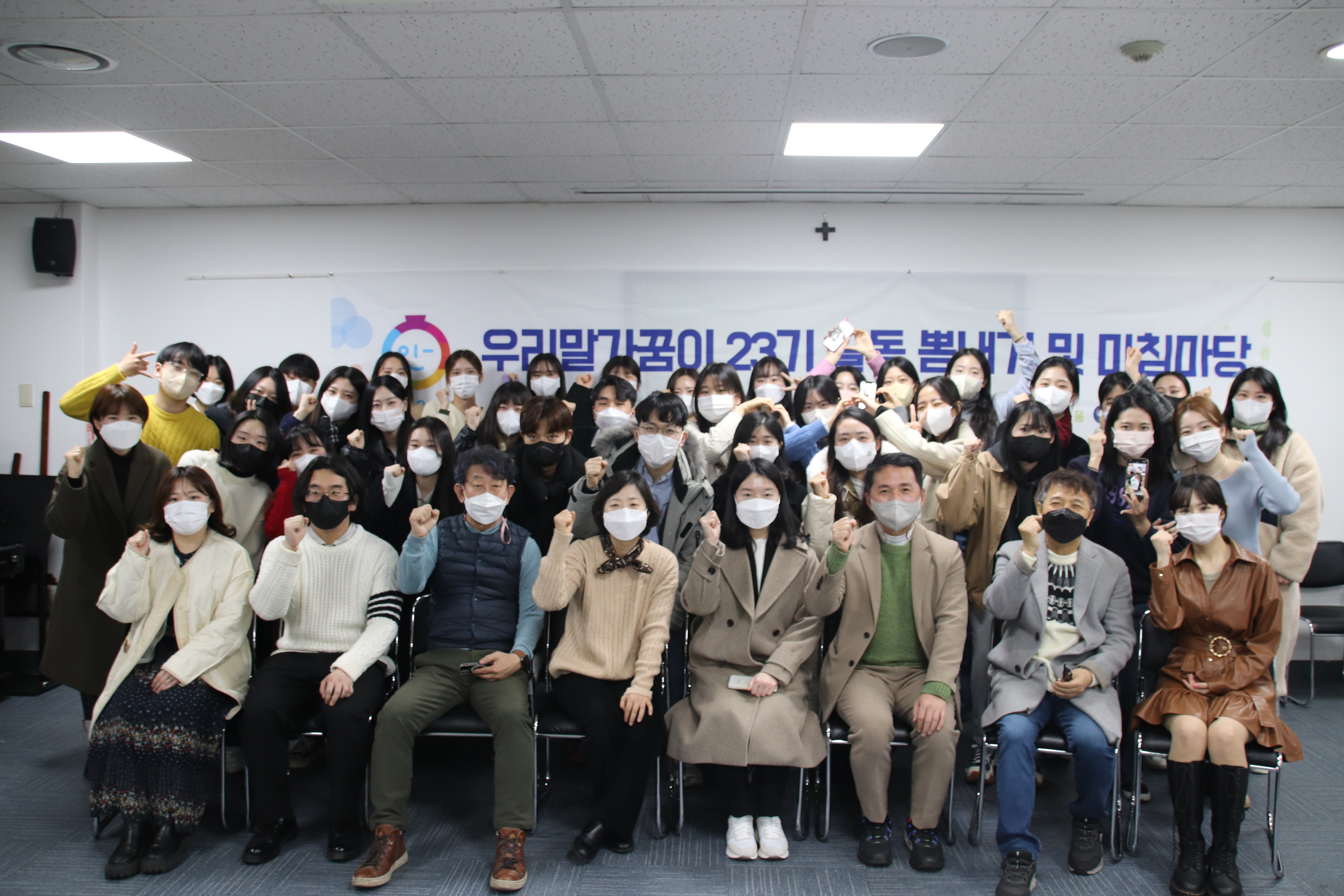 2023년 1월 7일 토요일, 오후 3시부터 오후 6시까지 청년문화공간주동교동 바실리오홀에서 우리말가꿈이 23기 활동 뽐내기 및 마침마당이 열렸습니다.