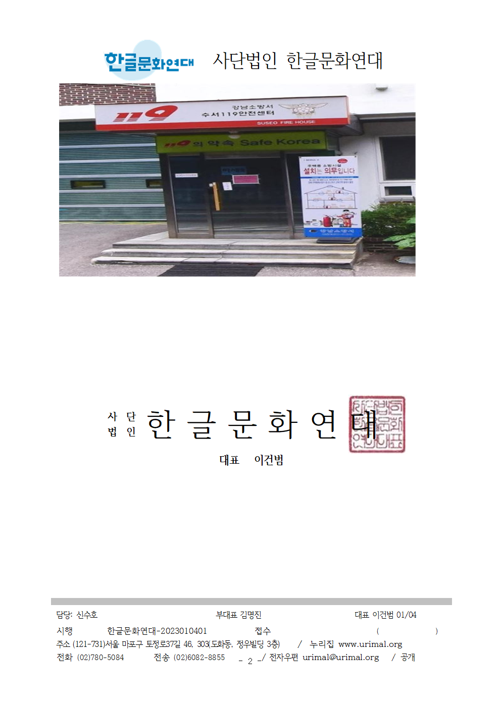 | [공문] Safe Korea라는 외국어 대신 쉬운 우리말을 사용해 주십시오. 강북소방서 - 2023.01.04 (0) | 2023.01.27 |